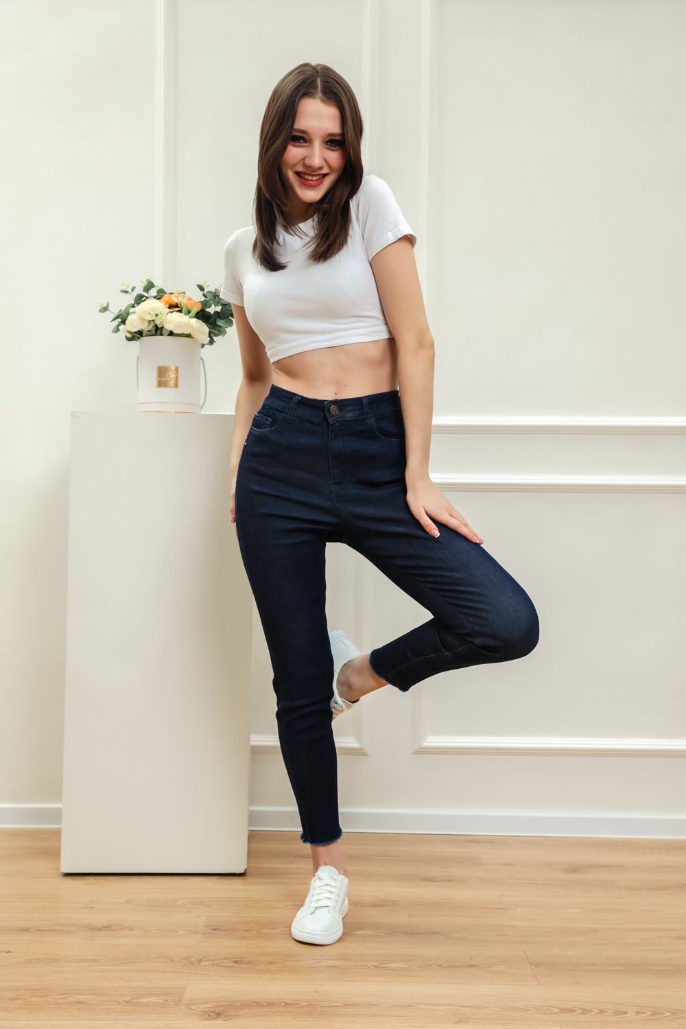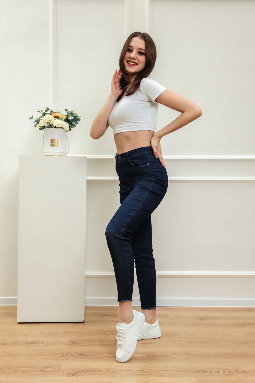 Женские джинсы из плотной ткани с добавлением полиэстера для прочности и долговечности. Производство Узбекистан.