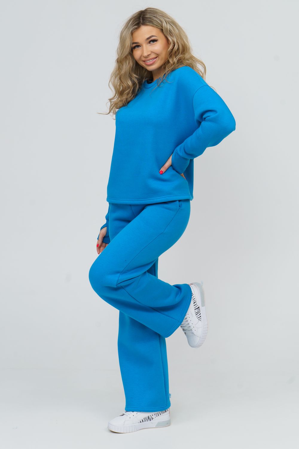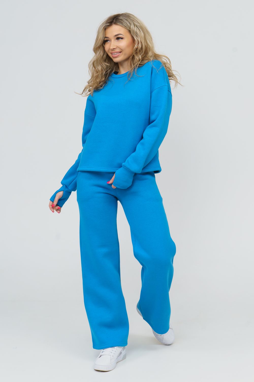 Модный женский костюм в стиле oversize - это свитшот и широкие брюки - палаццо, которые помогут Вам быть в тренде этого сезона! Костюм состоит из объёмного свитшота с удлинёнными манжетами по рукаву и прорезью для большого пальца. Линия плеча на толстовке спущена. Длина рукава указана от точки основания шеи. Брюки-палаццо с высокой посадкой, боковыми карманами и поясом, обработанном на специализированной машине, делают костюм более удобным и комфортным. В свою очередь материал, из которого выполнен костюм, имеет множество достоинств: натуральный состав, необыкновенная мягкость, гипоаллергенность, формоустойчивость (при правильном уходе и стирке 30-40 °С). Костюм в этом стиле прекрасно подойдёт под лаконичный офисный стиль, для вечерних прогулок и повседневных образов, для занятий спортом, для учёбы... А так же прекрасно будет смотреться на любом типе фигуры, скрывая её недостатки и подчёркивая достоинства.