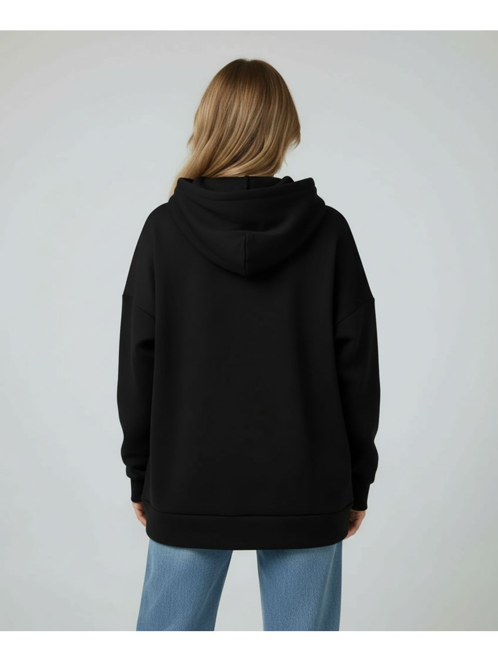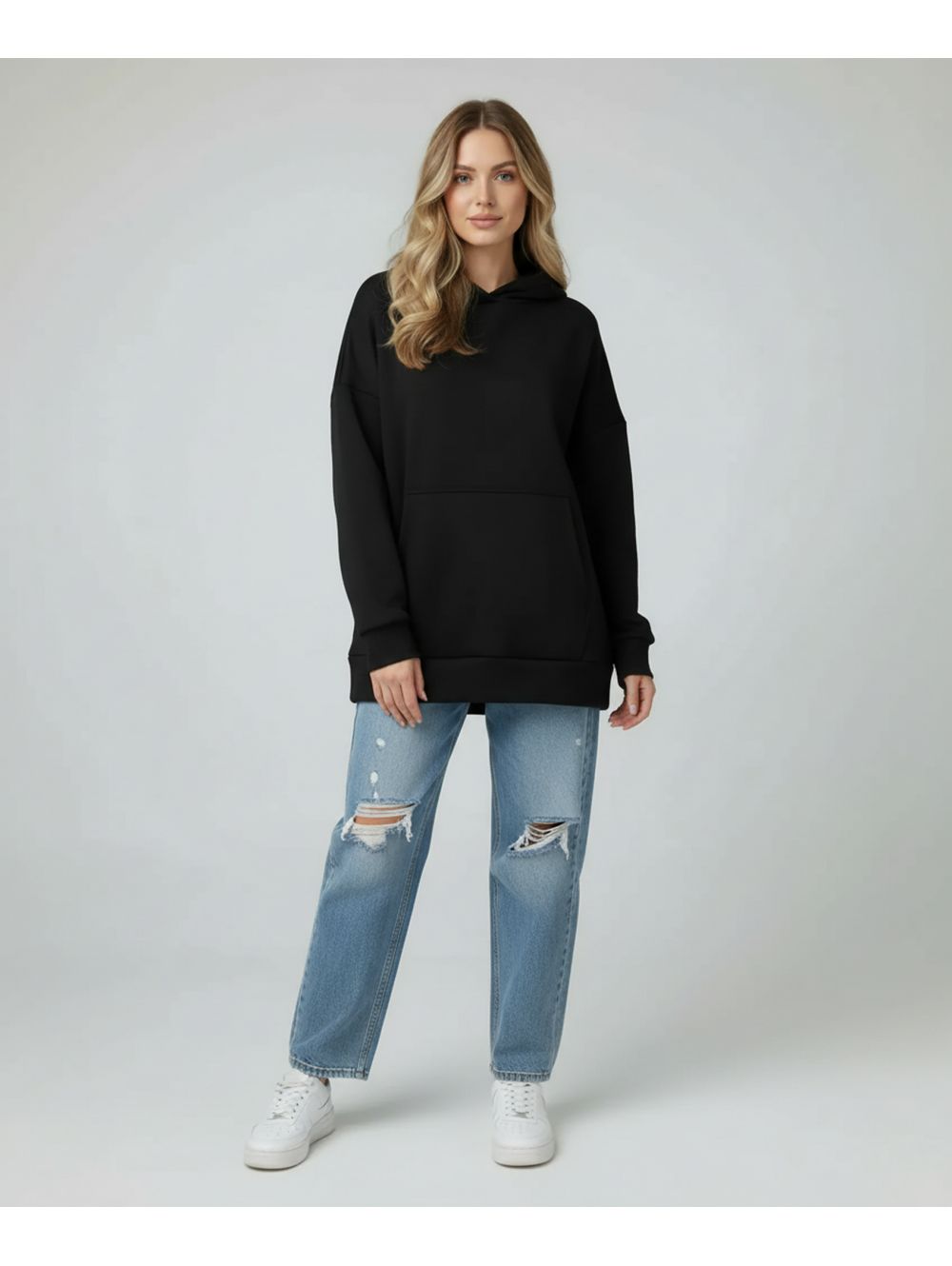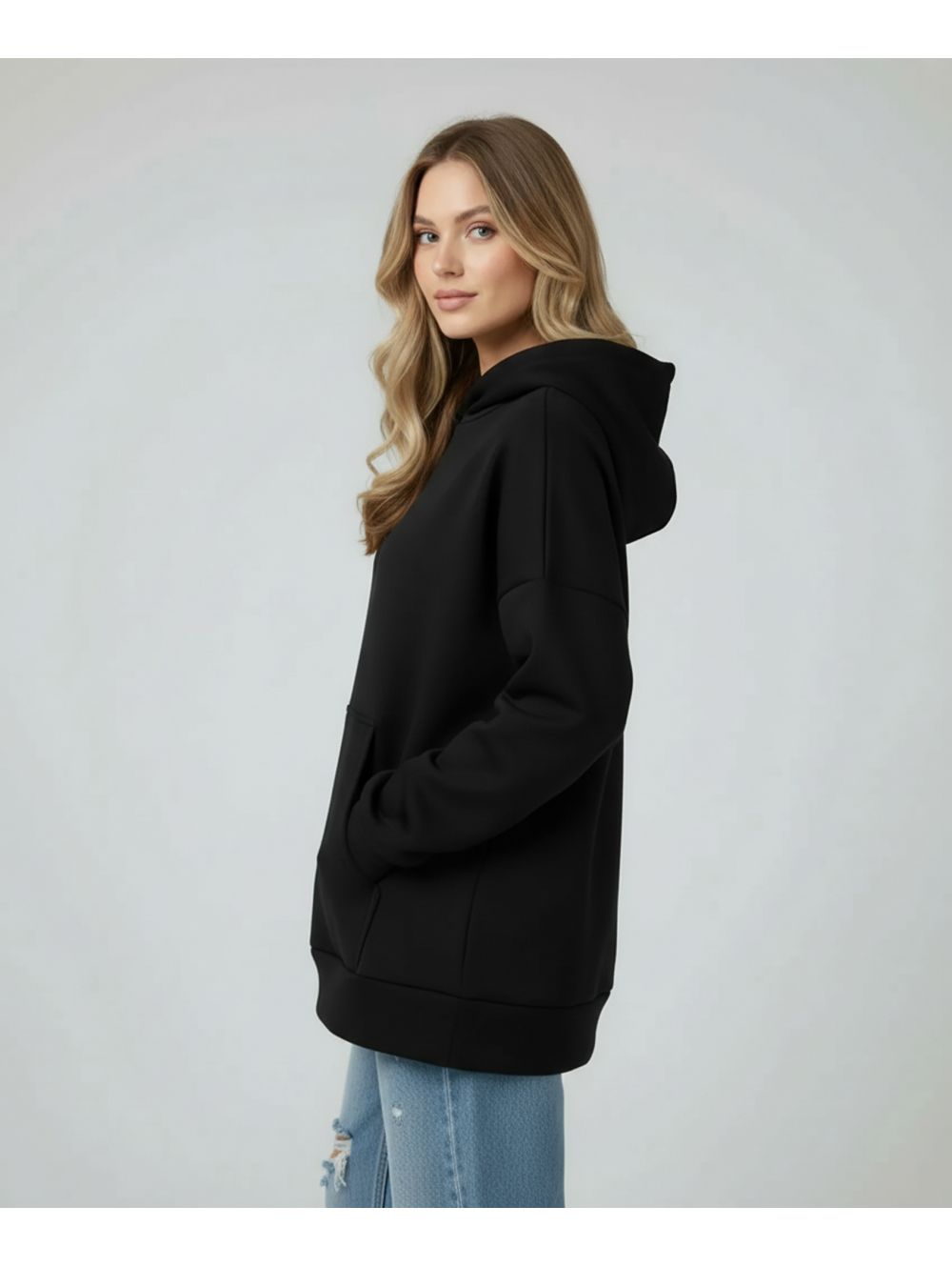 Идеальный баланс уюта и стиля! Эта худи свободного покроя сшита из роскошного футера еврофлис — плотной, невероятно мягкой ткани с бархатистой изнанкой. Спущенное плечо, уютный капюшон создают образ расслабленной элегантности.