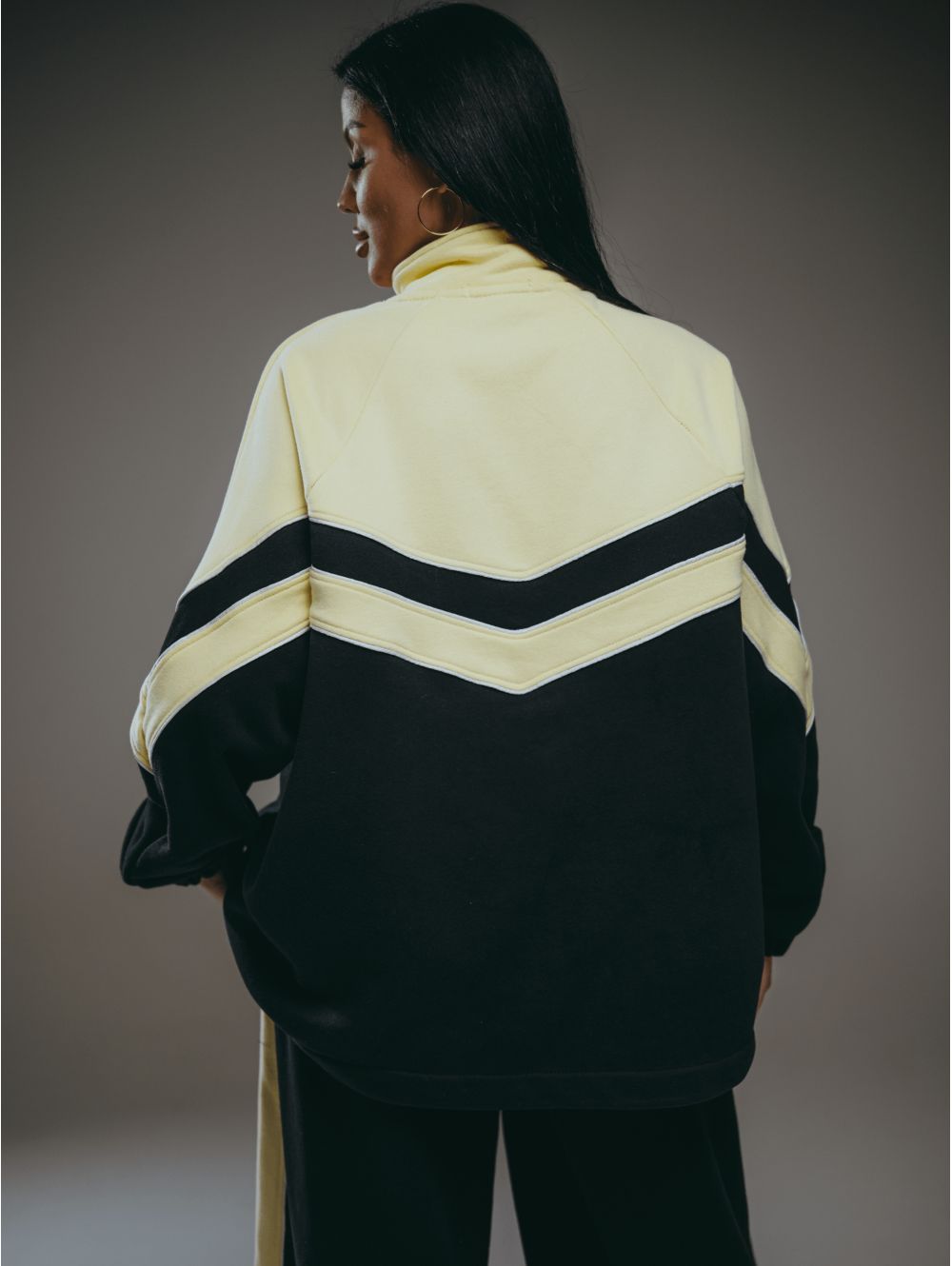 Дизайнерский крой: Рукав реглан и сложная раскройка с комбинацией основного и отделочного материала на рукавах, полочке и спинке делают толстовку визуально уникальной.