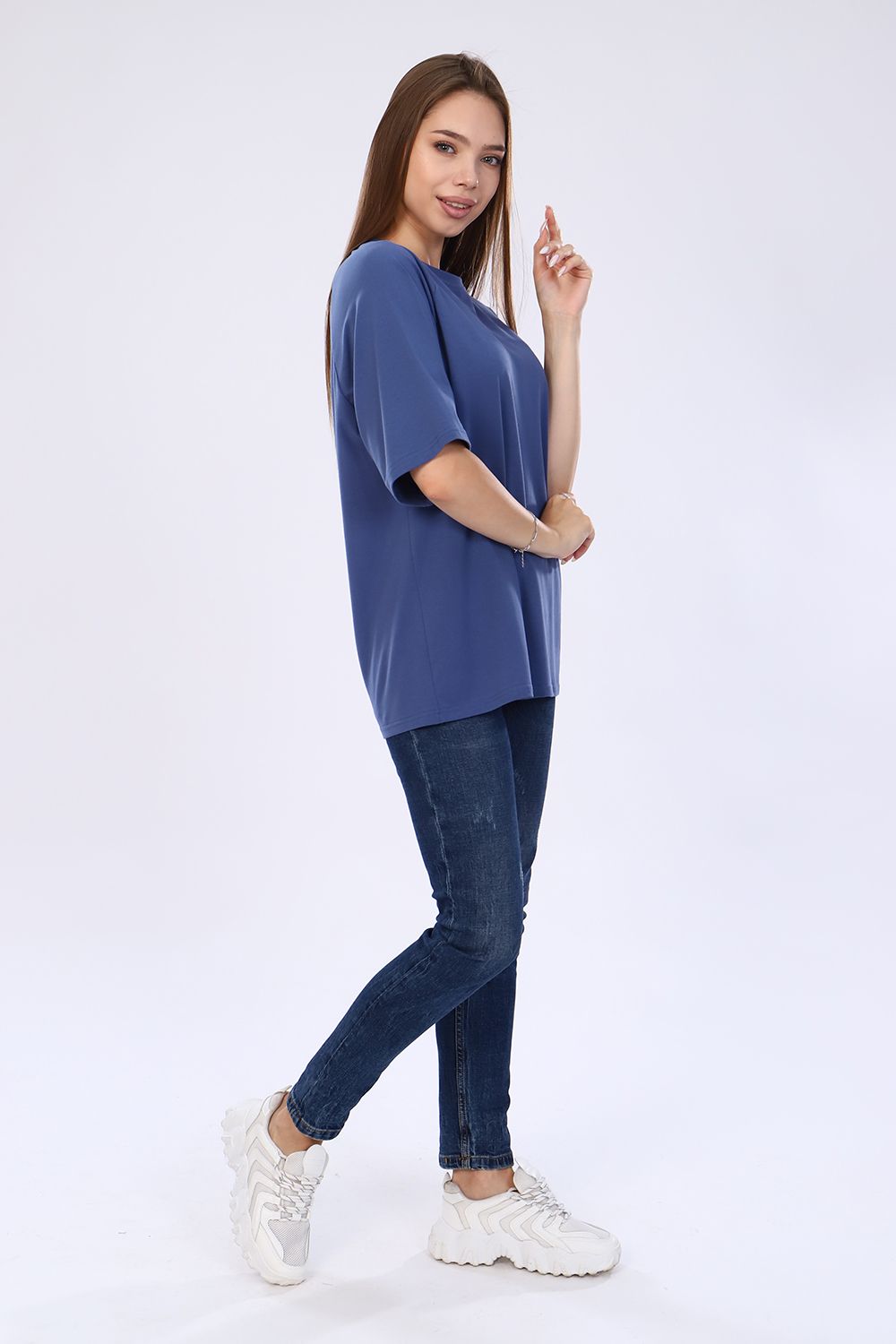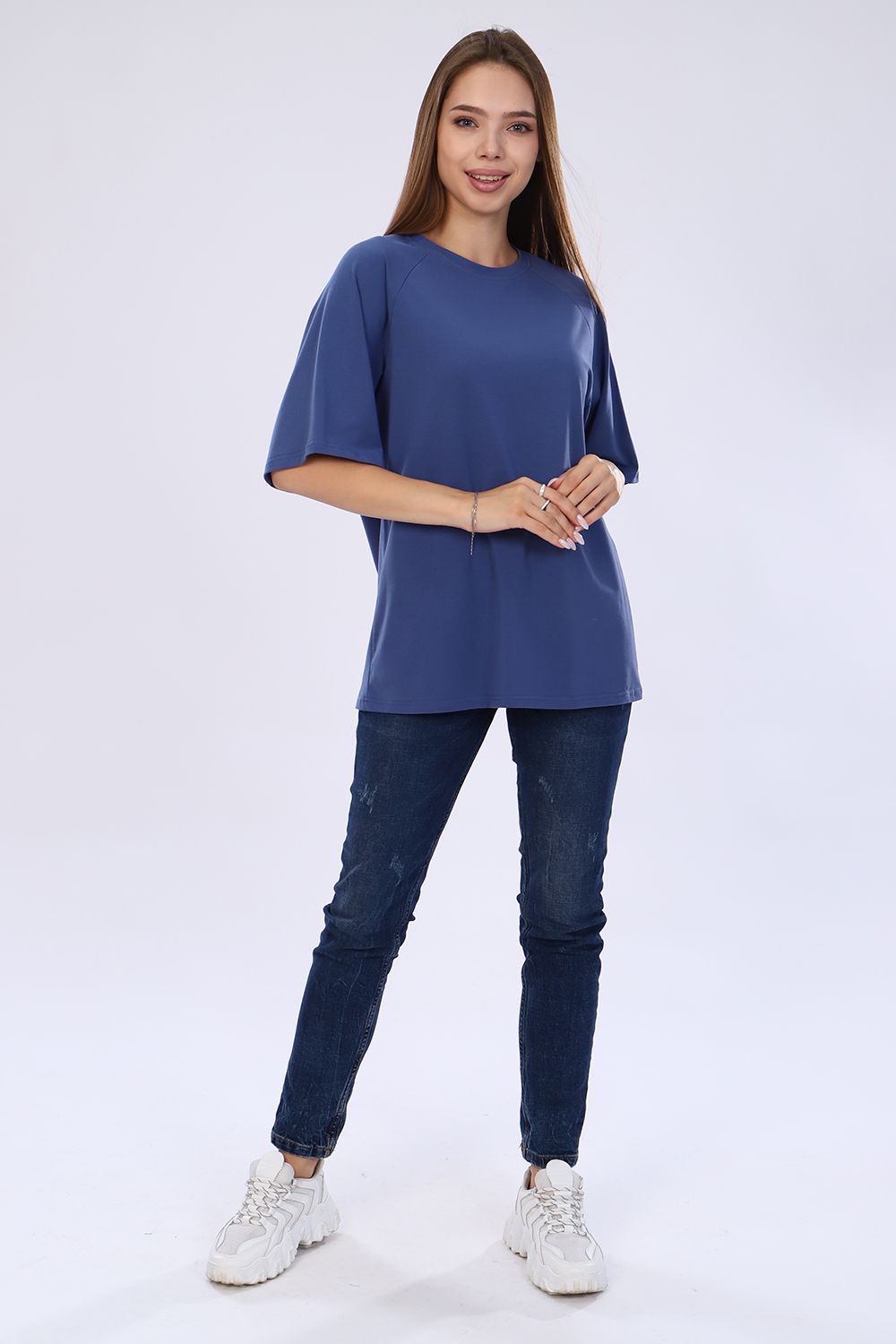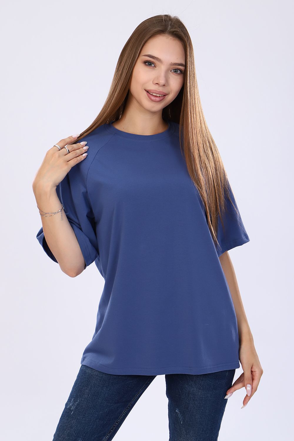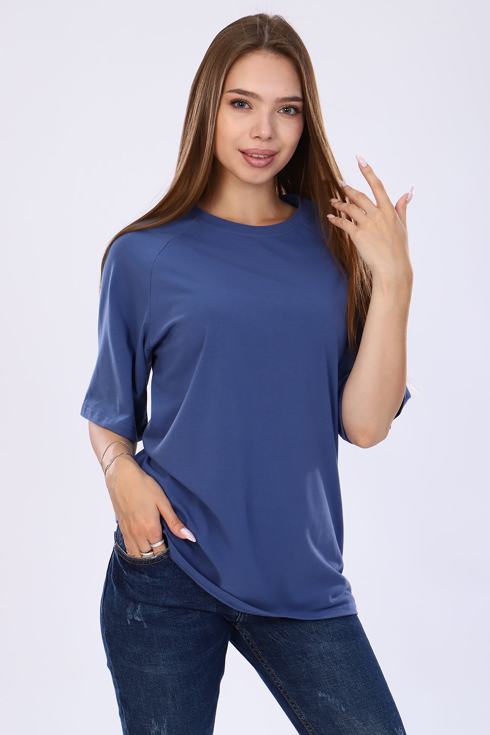 Стильная, модная женская футболка - лонгслив свободного прямого силуэта, оверсайз. Рукав реглан длиной до локтя. Горловина отделана обтачкой. Плавно подчеркивает фигуру, не стесняет движений, эластична, очень удобна и комфортна при носке. Низ рукава и низ футболки обработаны подгибкой. Выполнена из высококачественной кулирки с лайкрой пенье. Смежные размеры, 44 соответствует 42 и 44, 48 - 46 и 48, 50 - 50 и 52. Большой ассортимент приятных расцветок, другие расцветки данной модели представлены артикулом 71072. Для дома и отдыха, для спорта, для прогулок, удобна для ношения в дороге, в отпуск, на дачу. Футболка данной модели и шорты 71013 образуют прекрасный домашний, уличный, спортивный костюм (продаются отдельно). Костюм можно дополнять кедами, сандалиями, кроссовками. Свободный покрой футболки делает её комфортной для ношения беременным. Вдохновляйтесь и удивляйте окружающих стильными, модными образами!