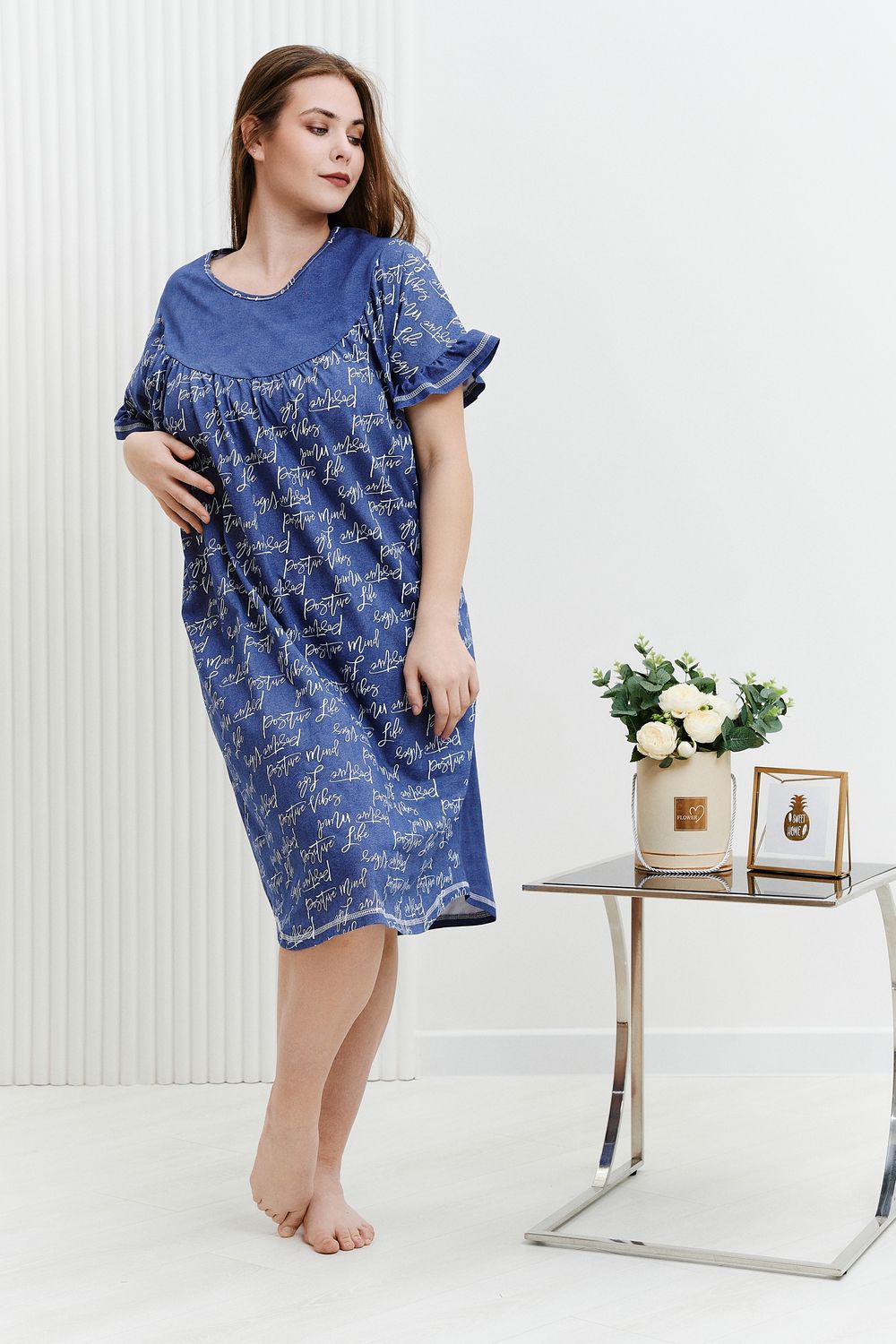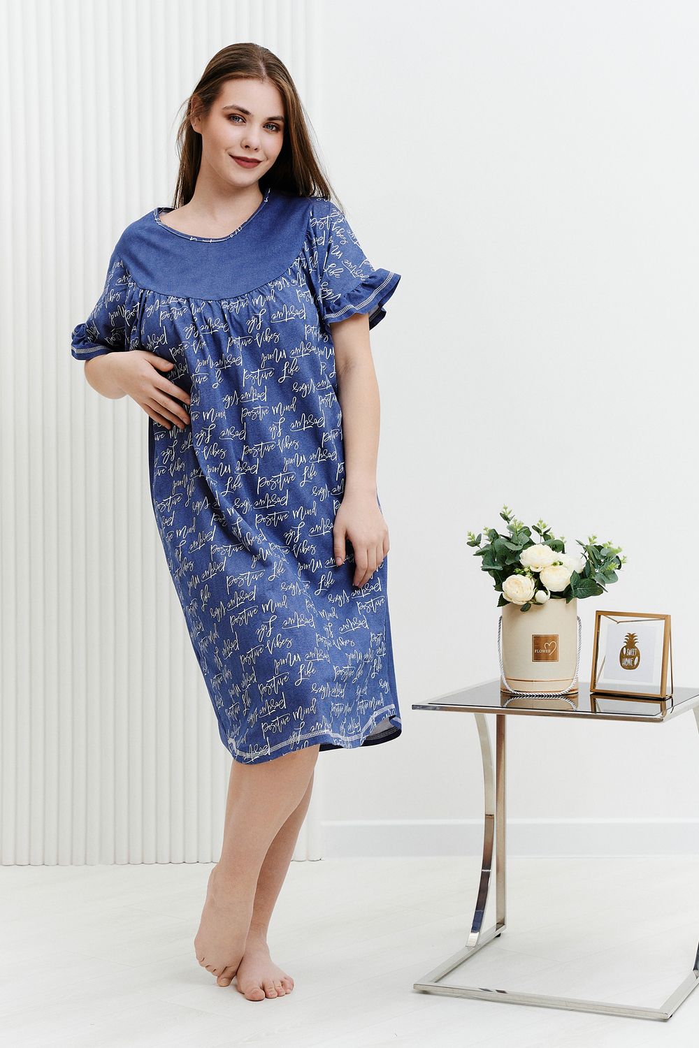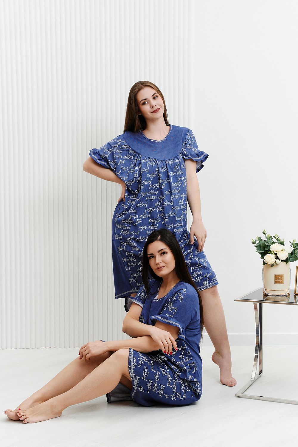 Сорочка женская, прямого силуэта, рукав короткий цельнокроенный с рюшей, горловина округлая. На полочке кокетка. Сборка верхней части полочки по линии притачивания кокетки обеспечивает изделию достаточную свободу и комфорт.