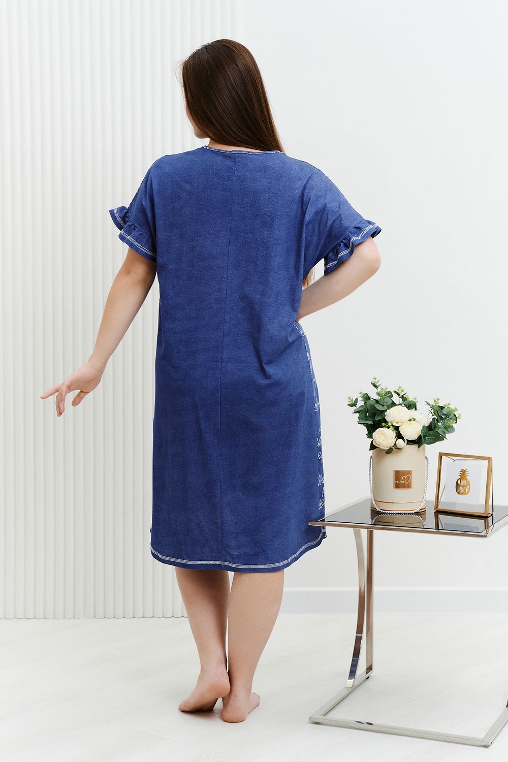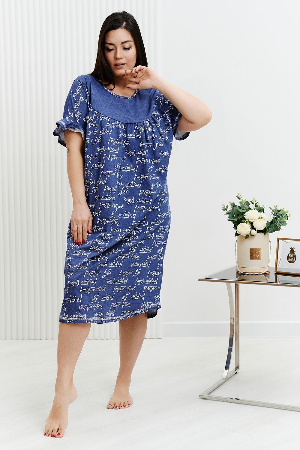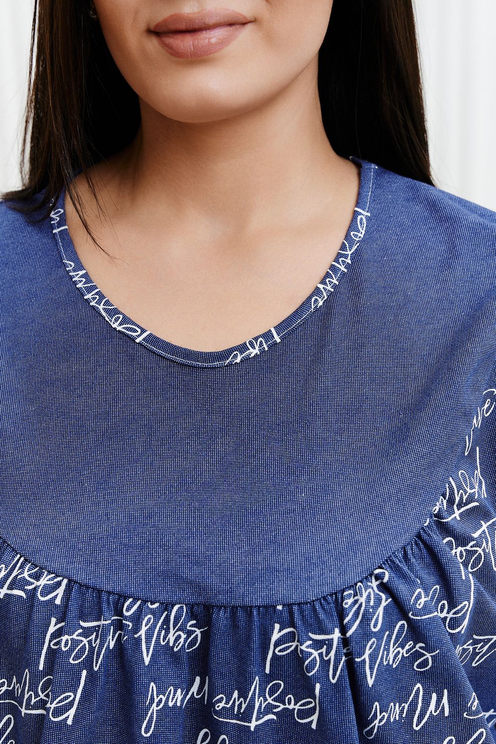 Сорочка женская, прямого силуэта, рукав короткий цельнокроенный с рюшей, горловина округлая. На полочке кокетка. Сборка верхней части полочки по линии притачивания кокетки обеспечивает изделию достаточную свободу и комфорт.