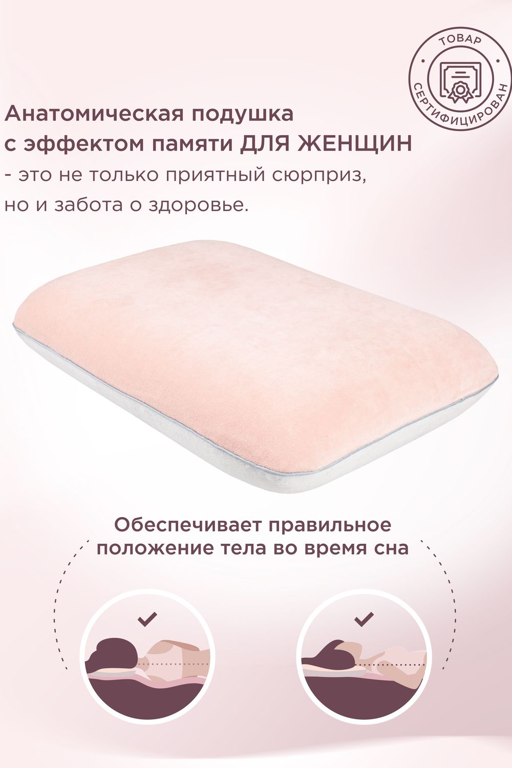Анатомическая подушка со средним уровнем жесткости способствует крепкому и здоровому сну. Она поможет быстро заснуть и, восстановив силы, проснуться в прекрасном настроении.