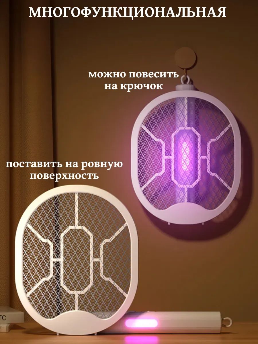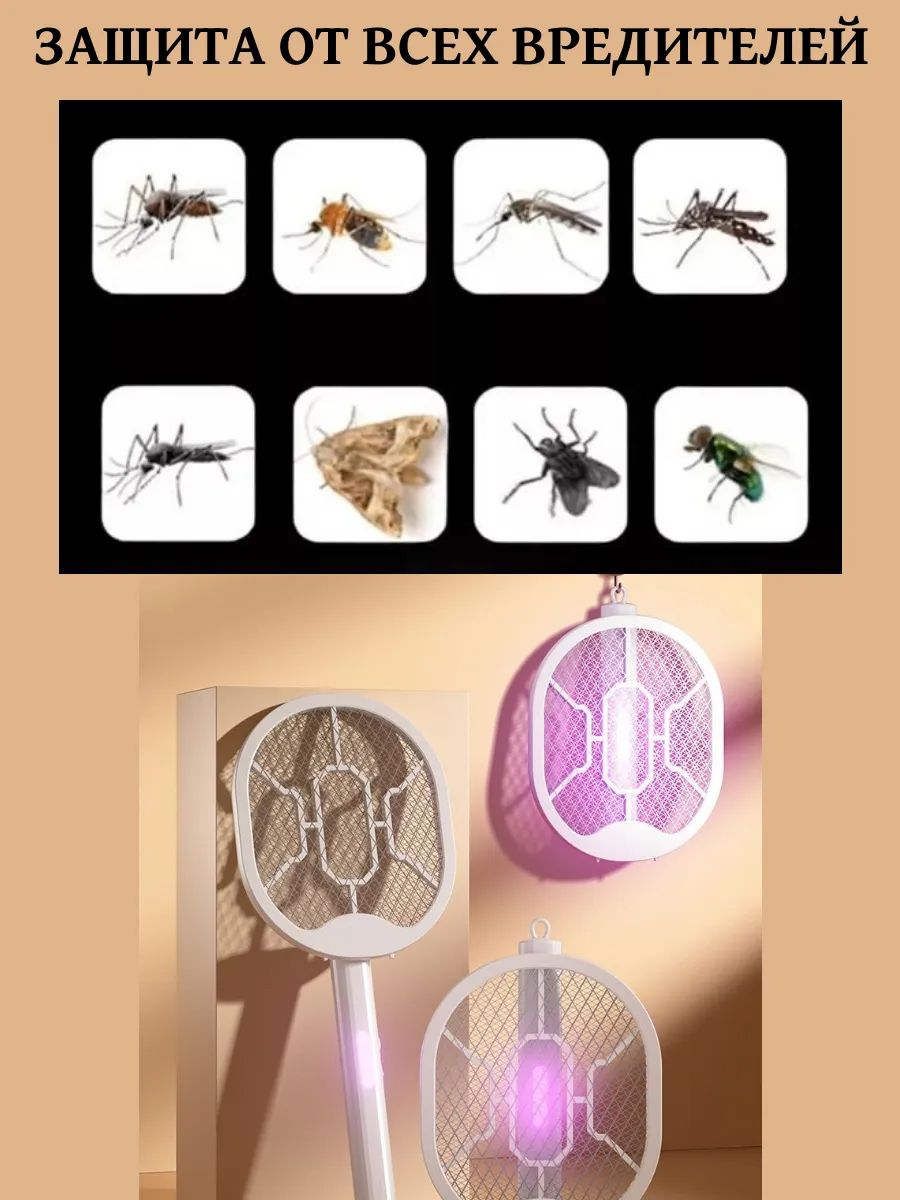 Мухобойка электрическая, ракетка от комаров, электромухобойка. Мухобойка с электрической сеткой в виде ракетки предназначена для борьбы с насекомыми внутри помещений и на улице. Мухобойка электрическая 3в1, вертикальная мухобойка, горизонтльная, ручная мухобойка. Вы можете также использовать ее как москитную лампу. Ракетка мухоловка эффективно уничтожает комаров, ос, мух, слепней разрядами электрического тока. Такой способ уничтожения насекомых избавит вас от следов на стенах и потолке. В режиме лампы ловушки для комаров фиолетовая подсветка привлекает насекомых, что делает работу устройства еще эффективнее в темное время суток. Вы можете оставить устройство на ночь в комнате, закрепив на стене или на столе, чтобы насекомые не беспокоили ваш сон. Электрическая мухобойка незаменимый защитник вашего сна! Антимоскитная лампа от комаров со специальной электрической сеткой с высоким напряжением, уничтожающая москитов при касании, летящих на свет, имеет защиту от прикосновения людей. Анти москитный электро шокер не даст шансов комарам! Избавьте себя от назойливого ночного писка и укусов! Электромухобойка безопасна для людей. При нажатии на кнопку, на внутреннюю сетку подается разряд тока, смертельный для насекомых.