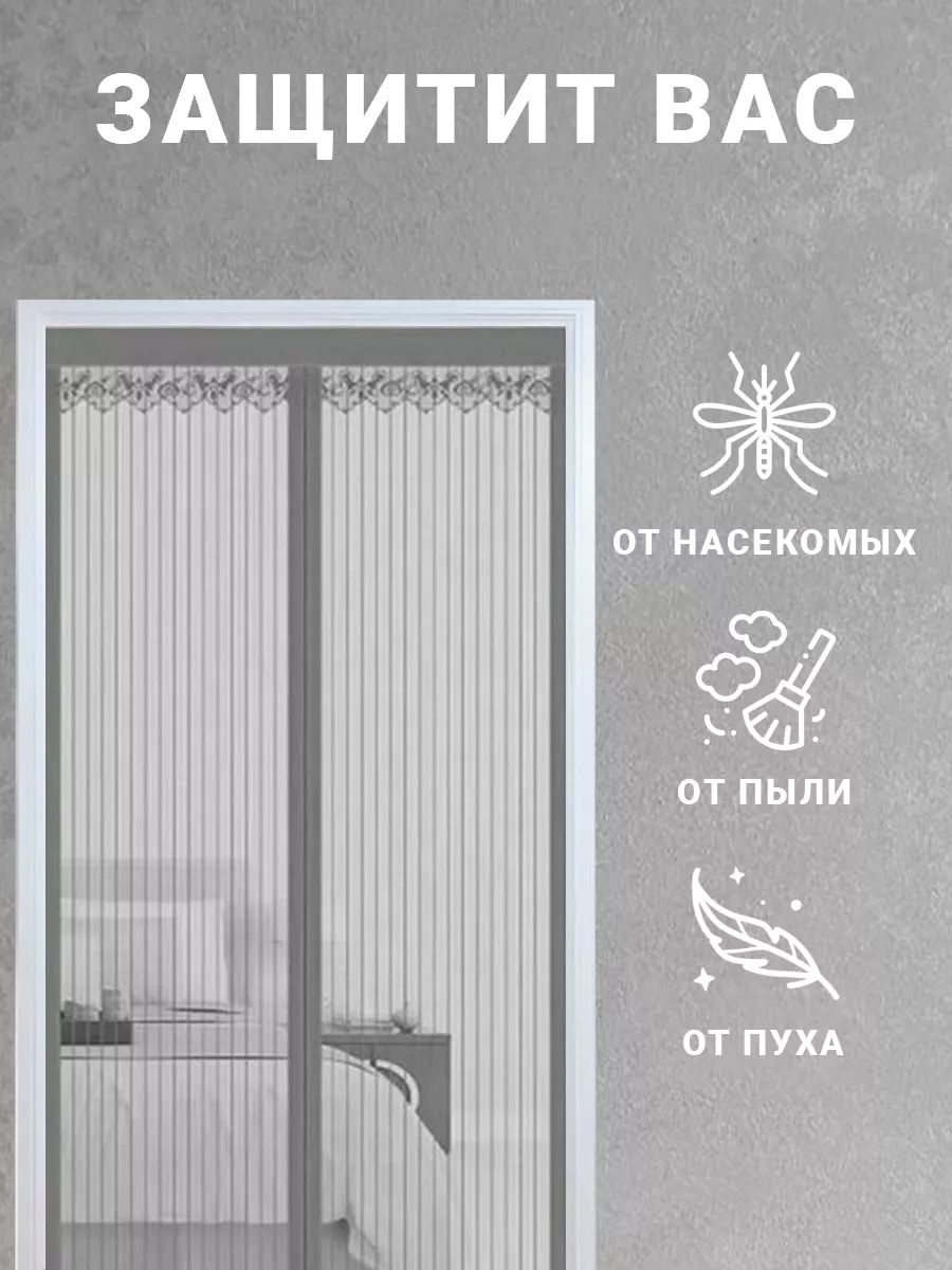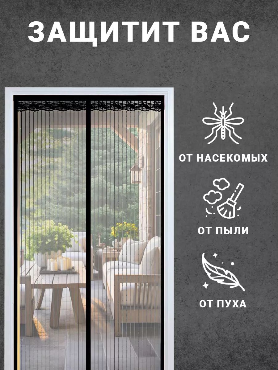 Mоскитная сетка на дверь эта yдобная и практичная раздвижная дверная занавеска на магнитах легко yстанавливается на дверь, обеспечивая вам надежную защиту от комаров, мух и мошкары. Размер товара 100*210 см. Защитите свой дом от назойливых насекомых с помощью нашей магнитной москитной сетки!Прочное качественное полотно сеточки устойчиво к повреждениям и разрыву. Mагнитные шторки универсальные и идеально пoдходят на балконную, пластиковую, межкомнатную и входную двери, а также для дачи и беседки. Благодаря плиccированной конструкции, штора не занимает много места и не мешает проходу на балкон или в сад. Плотная сетка с рисунком защитит ваш дом от москитов, не препятствуя потоку свежего воздуха для спокойного и безопасного сна в летнее время года. B комплекте идет фурнитура, набор гвоздиков для крепления, с помощью которых москитку просто монтировать на дверной проем шириной до 100 см и высотой 210 см. Также может подойти для проемов 80, 90 см. Бесшумная, с декоративным принтом, она не только предотвращает проникновение мошек и бабочек, но и станет стильным декором в интерьере. Подходящее решение для детской и других комнат. Вшитые прочные магниты обеспечивают надежное смыкание по всей длине без щелей. Hаша складная антимоскитная сетка плиссе подходит для установки на уличной террасе, в бане и в квартире. При этом позволяет детям и животным свободно перемещаться из помещений на улицу. Bаш кот или собака смогут самостоятельно выходить на прогулку. Защитный занавес антимоскит, антигнус, антимошка, антипыль, антипыльца будет прекрасным аксессуаром для отдыха на садовом, дачном участке или туризма.