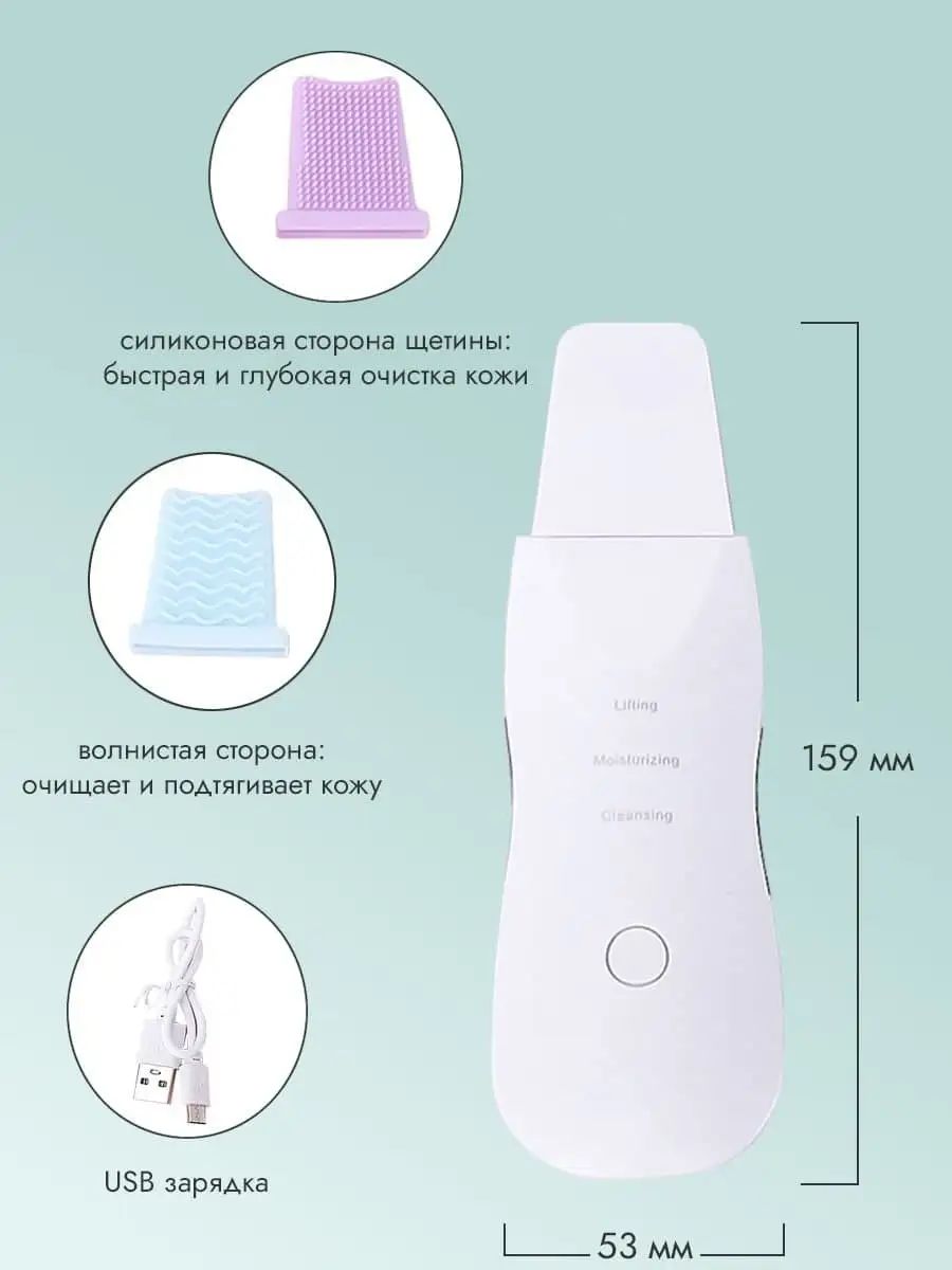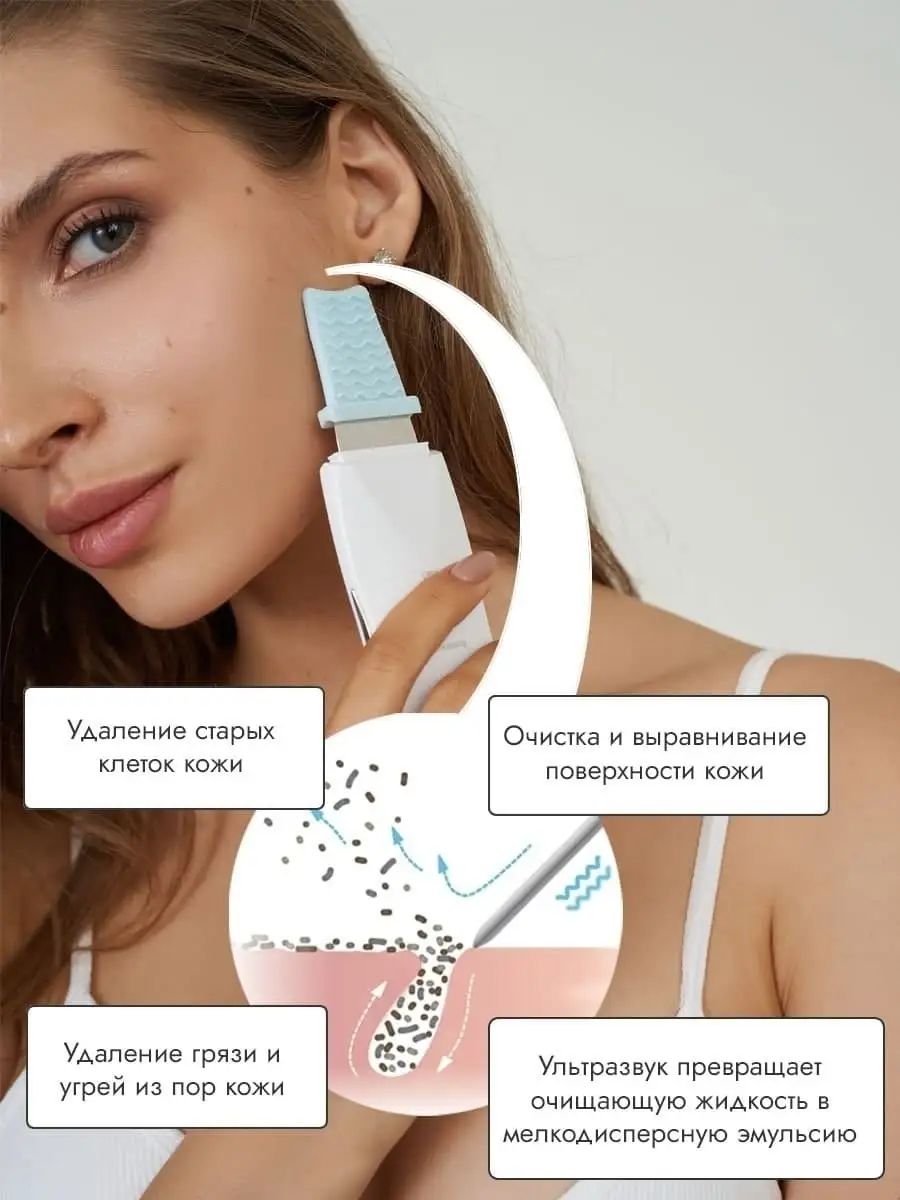 Ультразвуковой очиститель лица - ваш карманный косметолог.Любая женщина, уделяющая внимание уходу за собой, знает, как важно бережно очищать кожу и поры от ежедневных загрязнений, излишков кожного жира и ороговевшей кожи. С этими задачами идеально спрвится аппарат для ультразвуковой чистки и лифтинга.Он сделает вашу кожу подтянутой и чистой каждый день, глубоко очищая поры и оказывая подтягивающий лифтинг-эффект.Забудьте о шрамах и боли, аллергии воспалении. Вам больше не нужно будет "давить прыщи" и тратиться на косметолога. Ультразвуковой аппарат- удалит старые клетки кожи- выровнит поверхность и бережно очистит- удалит грязь и угри из пор- в сочетании с соответствующими косметическими средствами подтянет и оздоровит кожу