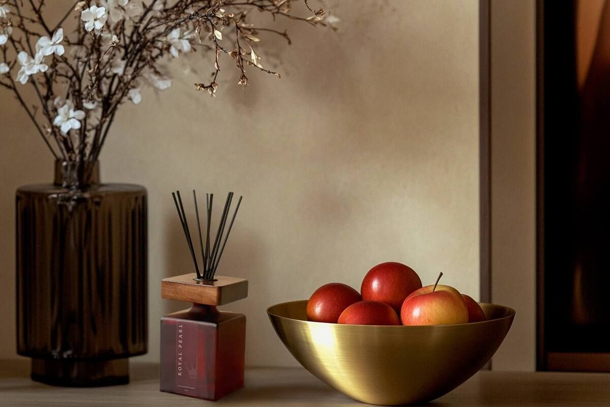 Аромадиффузор - это изысканный аксессуар, который наполняет пространство тонкими ароматами и украшает интерьер. Аромат Royal Pearl открывается сочными и свежими нотами яблока, груши и ананаса, наполняя пространство ощущением сладкой и солнечной фруктовой свежести. В сердце аромата раскрываются нежные цветочные оттенки ландыша и жасмина, придающие композиции утонченность и изящество. Завершают этот элегантный букет теплые и обволакивающие базовые ноты мускуса и амбры, создавая стойкий и чарующий шлейф. Этот аромат создан для тех, кто стремится наполнить свое пространство свежестью, изяществом, нотками весенней легкости и солнечного настроения.
