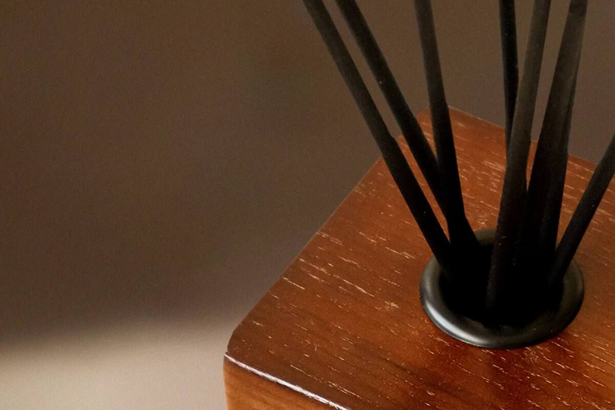 Комплектация: флакон цвета бордо с деревянной крышкой из монгольского дуба, 8 фибровых палочек длиной 25 см, коробка-футляр на магнитах как достойное обрамление дорогого подарка.