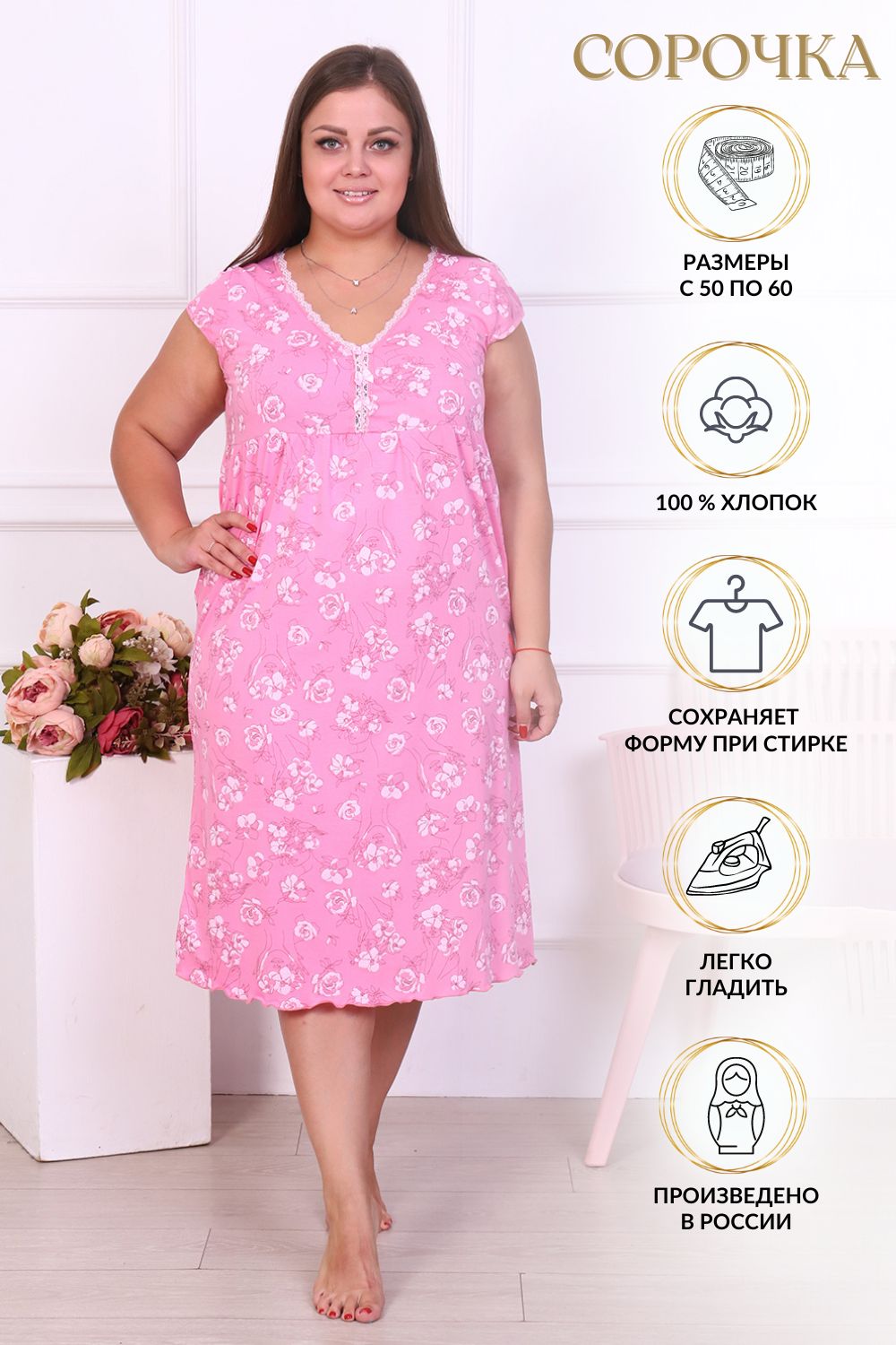 Сорочка женская из набивного кулирного полотна. Благодаря натуральному составу ткань позволяет вашей коже дышать. Изделие легкое в уходе.