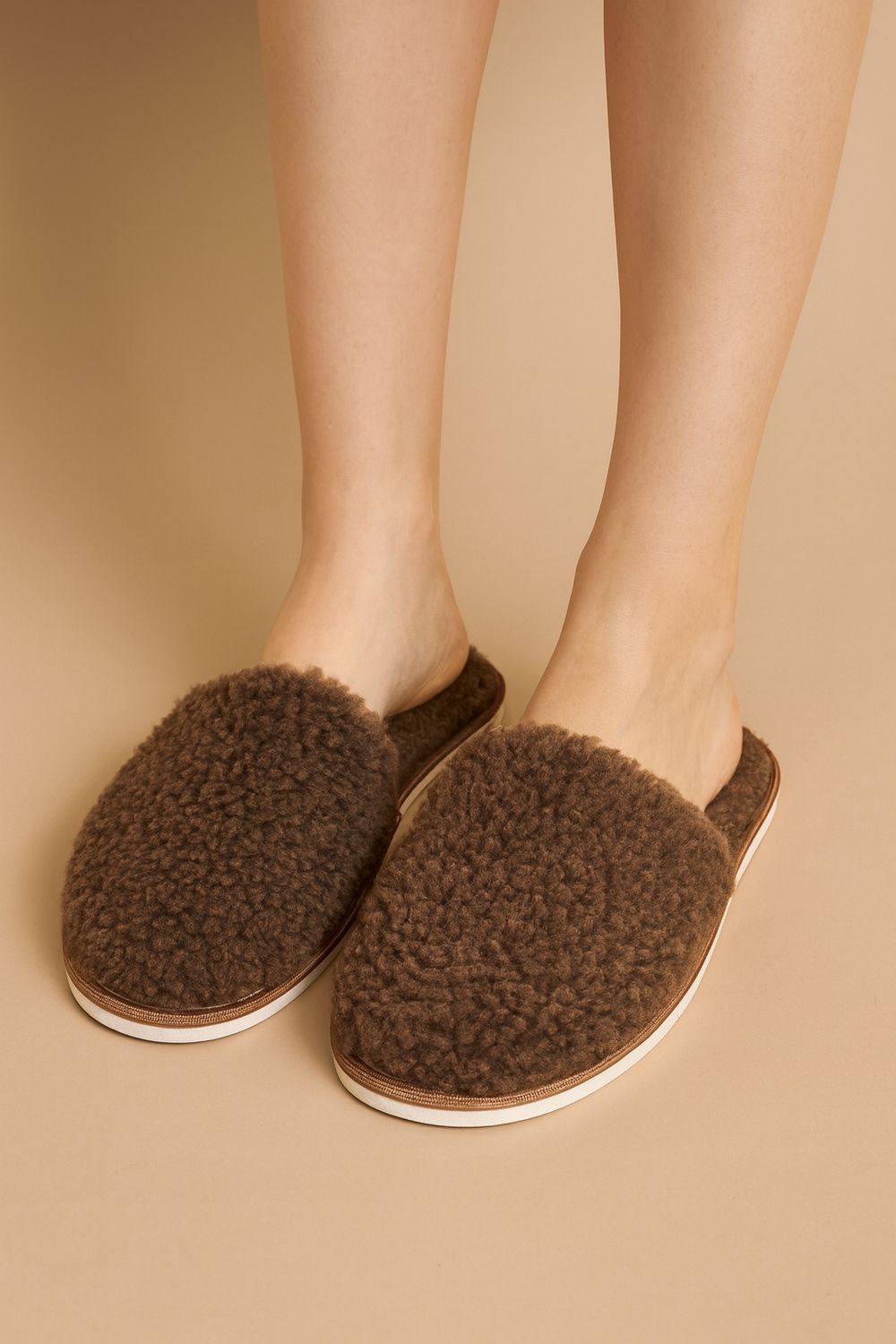 Тапочки домашние меховые С-6НШ/Тверь(ж)-МР - темно-коричневый