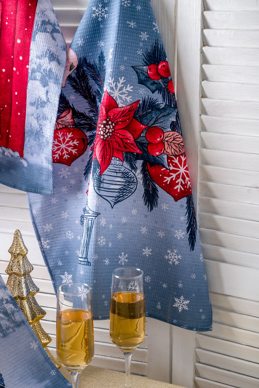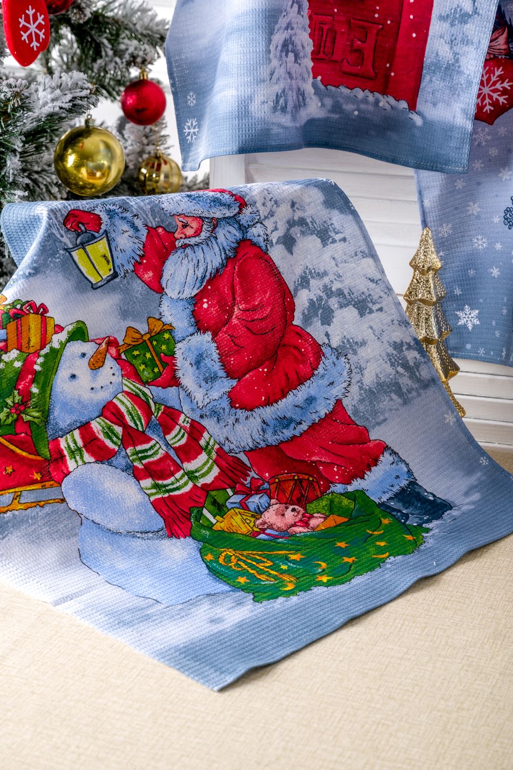 Праздничный набор из трех полотенец создаст настоящую сказку на любой кухне. Вафельные полотенца размером 60*48 см с Дедом Морозом и снеговиком будут поднимать настроение каждую зиму. Каждое из трех полотенец имеет неповторимый рисунок. Для удобства использования к каждому полотенцу пришита петелька.