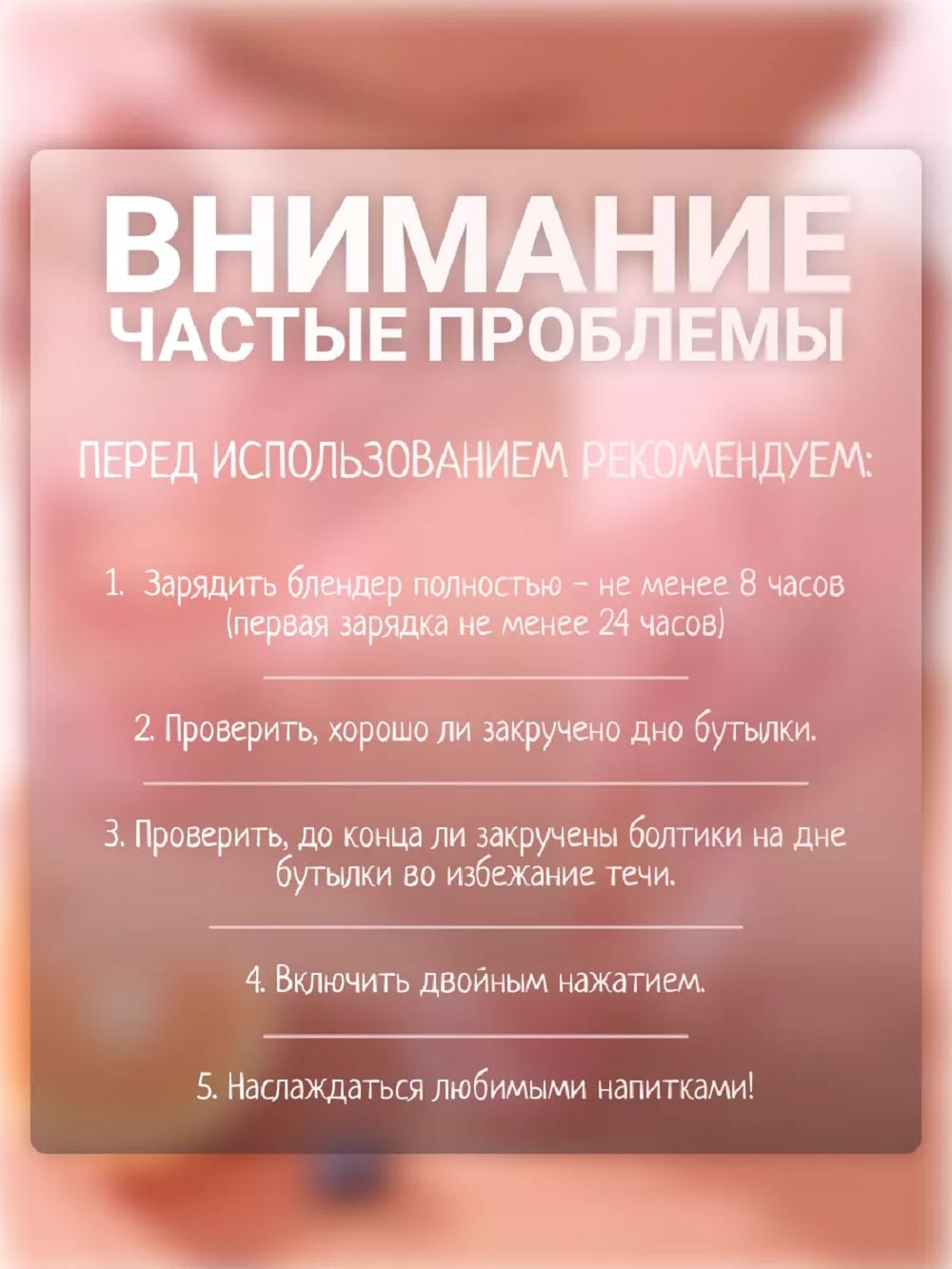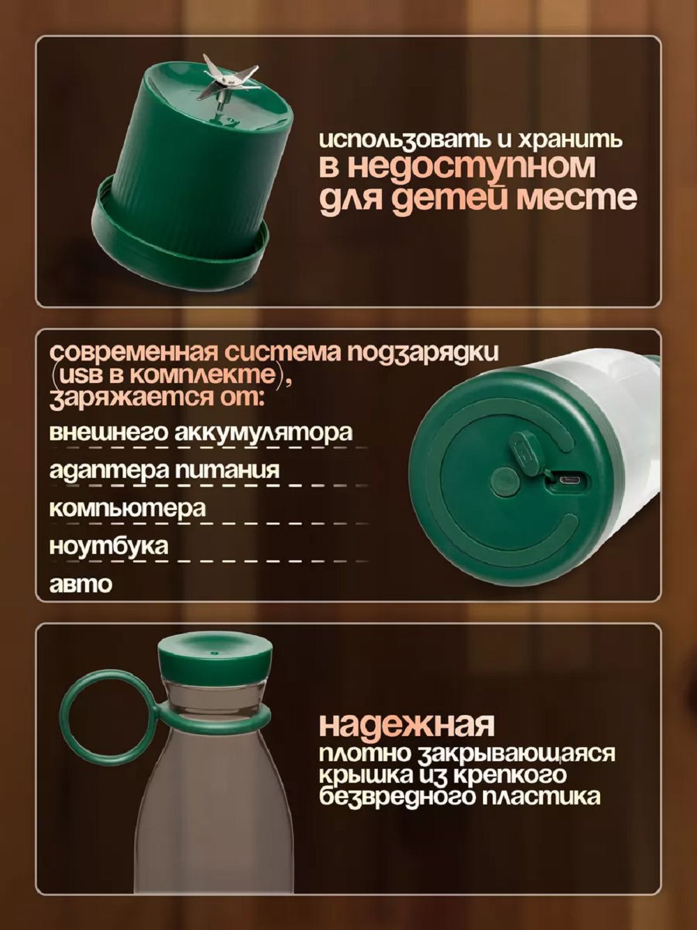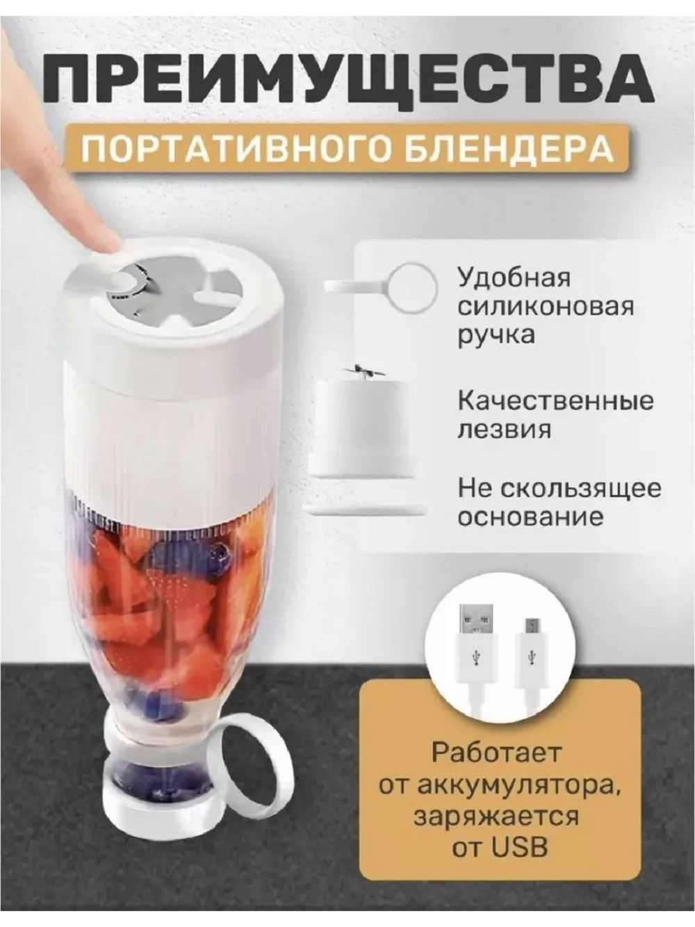 Хотите наслаждаться свежими и полезными смузи в любое время и в любом месте? Тогда беспроводной блендер именно то, что вам необходимо! Этот компактный и стильный бутылка блендер имеет размер всего 21 * 7,5 см, что делает его идеальным компаньоном в путешествиях или на работе. Своей емкостью в 420 мл товар позволяет комфортно наслаждаться вкусными смузи в любое время. А благодаря функции зарядки через USB, вы сможете зарядить ручной шейкер для коктейлей где угодно - в автомобиле, компьютере, с помощью портативного аккумулятора и даже в обычной розетке. Всего 4 часа - и ваш компактный блендер готов к использованию. Этот карманный измельчитель идеально подходит для быстрого и удобного приготовления смузи.