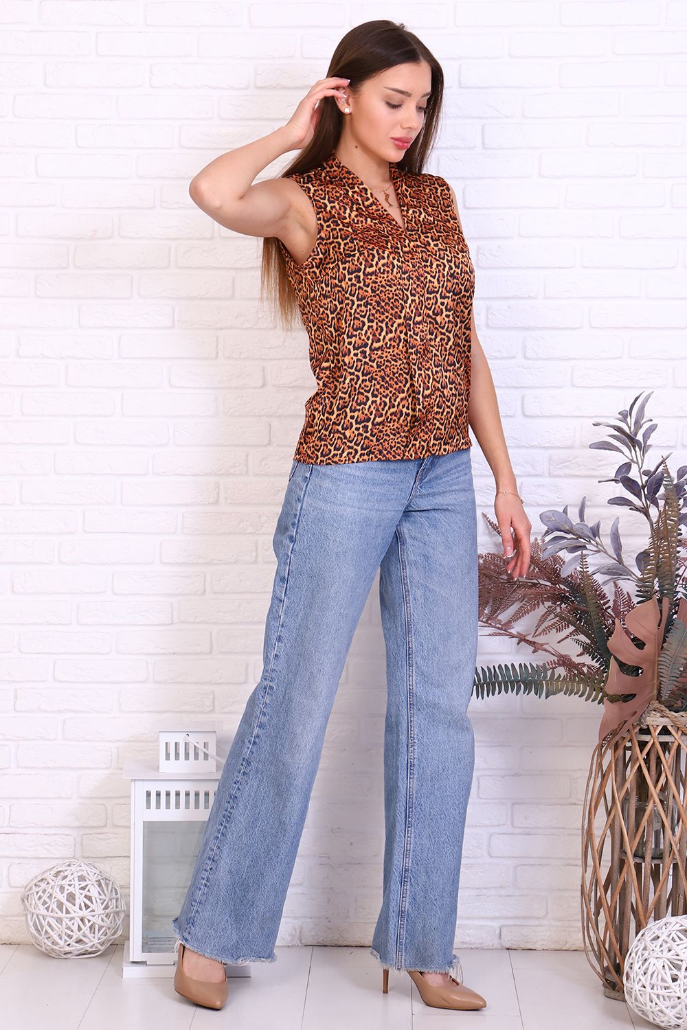 Шелковая блузка с анималистичным принтом, с открытыми плечами без рукавов - пригодится для любого случая вашей жизни! Блузка женская выполнена из мягкого, струящегося шелка Армани. Шелковая блузка гладкая и приятная к телу. Легкая струящаяся ткань неприхотлива в уходе, сохраняет форму и посадку даже после многочисленных стирок. Продуманный крой обеспечит высочайший уровень комфорта. Женская блузка шелковая будет актуальна как в офисе, так и на торжественном мероприятии. Блузка отлично сочетается с однотонными вещами, с брюками, юбками и джинсами.