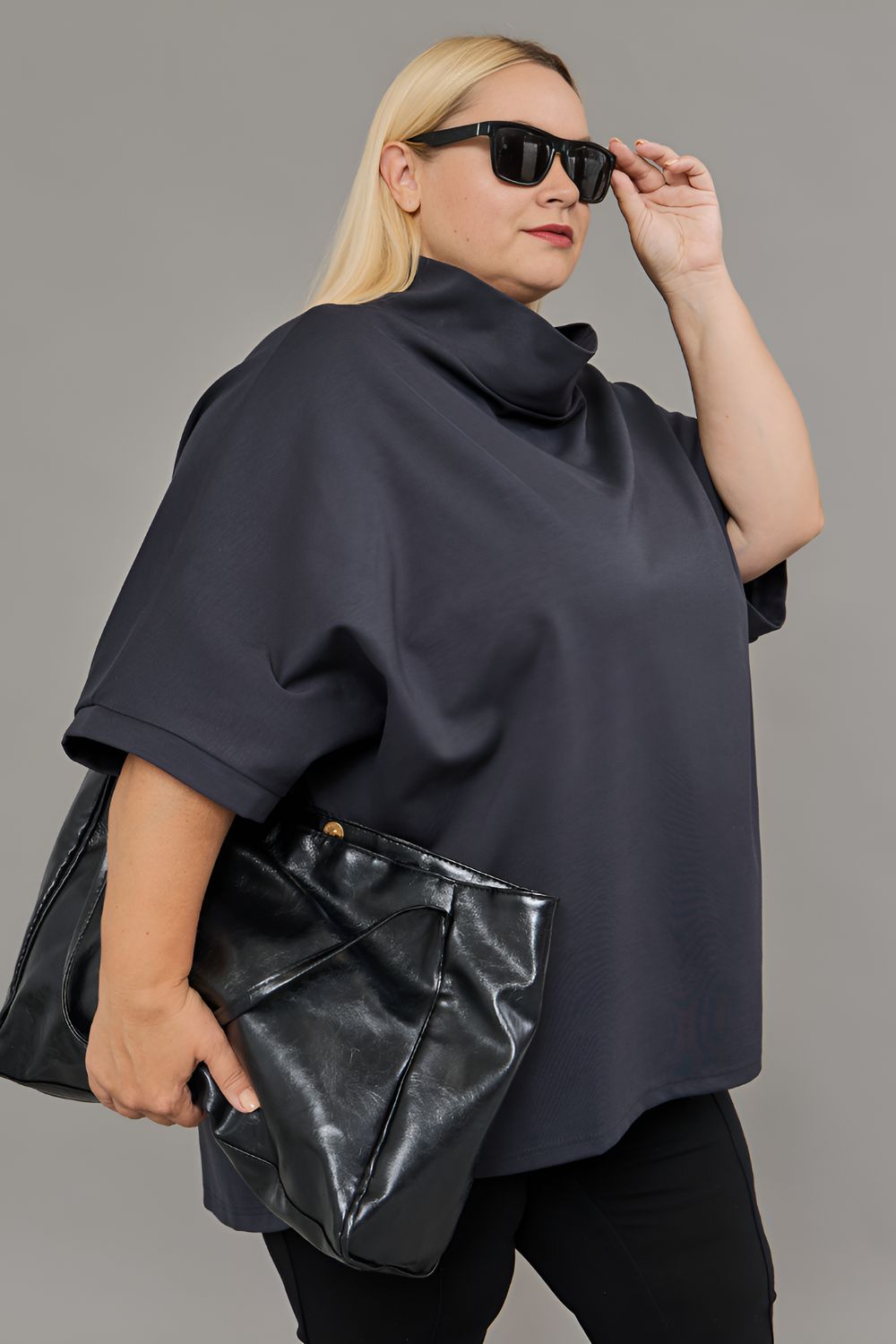 Представляем вам стильную и женственную тунику-блузку от бренда В Размере, которая станет настоящим украшением вашего гардероба. Эта модель, выполненная из приятного к телу трикотажа с добавлением эластана, идеально подойдет для создания как повседневных, так и более нарядных образов. Благодаря свободному крою трапеция и рукавам летучая мышь, туника комфортно сидит на фигуре, скрывая недостатки и подчеркивая достоинства. Темно-серый или графитовый цвет этой блузки легко сочетается с любыми другими оттенками, а однотонный дизайн позволяет создавать как строгие, так и более оригинальные луки. Представьте: вы надеваете эту тунику с любимыми джинсами, добавляете стильные аксессуары и получаете модный кэжуал образ, готовый покорить городские улицы. А для вечернего выхода достаточно дополнить ее элегантными брюками или юбкой - и вы будете выглядеть просто шикарно! Эта туника - настоящий must-have для любой современной женщины, ценящей комфорт, стиль и качество.