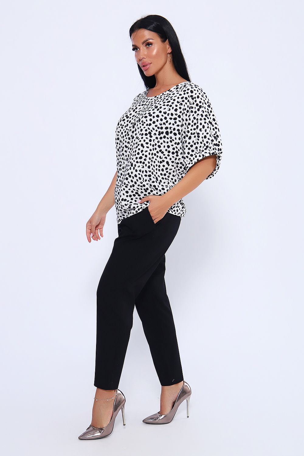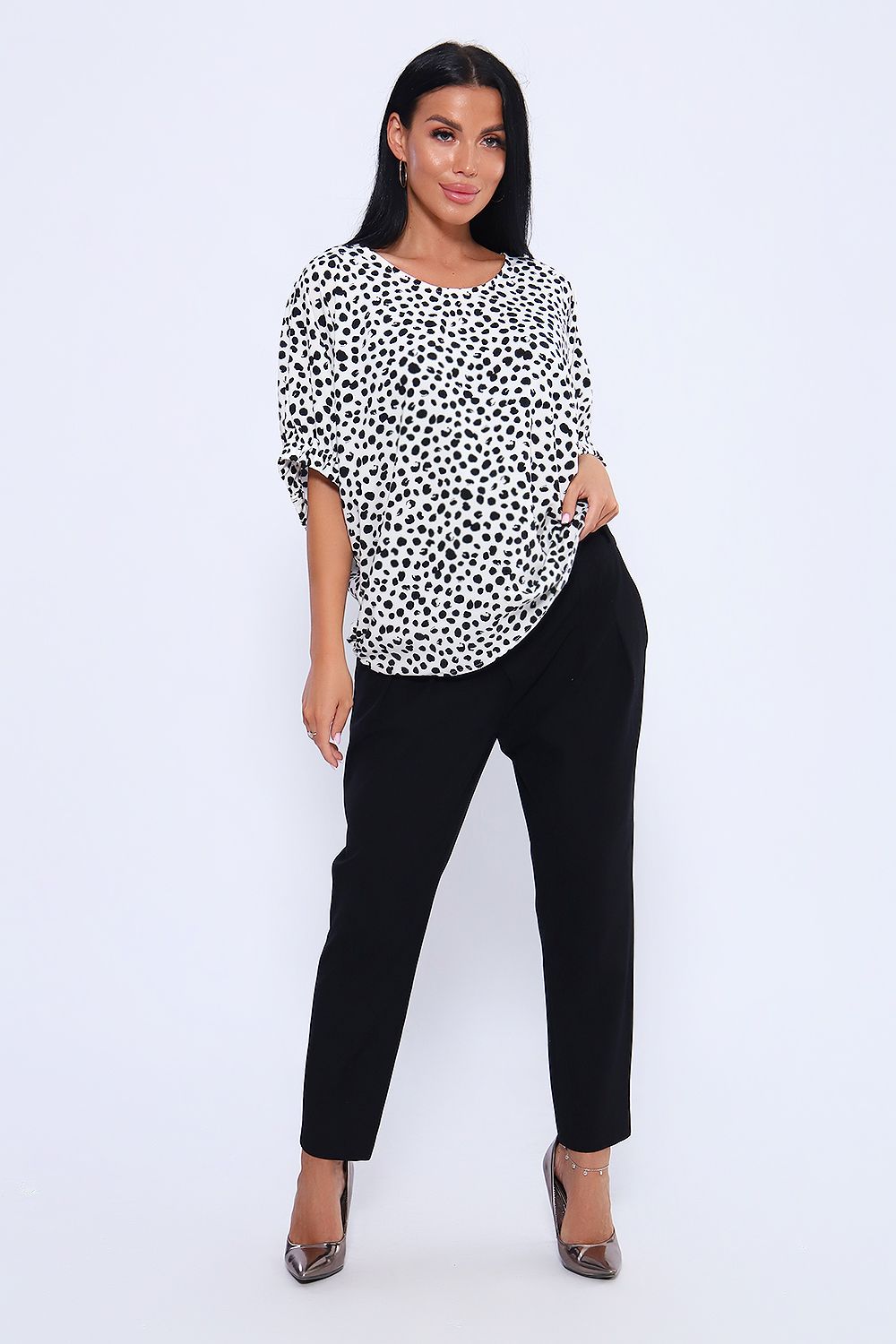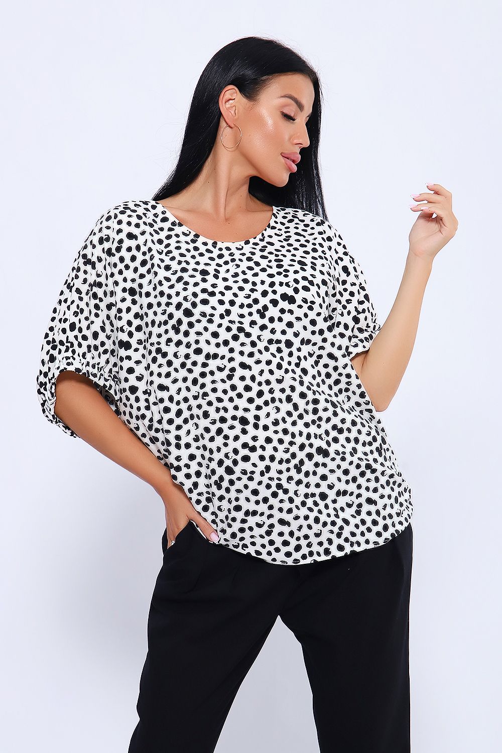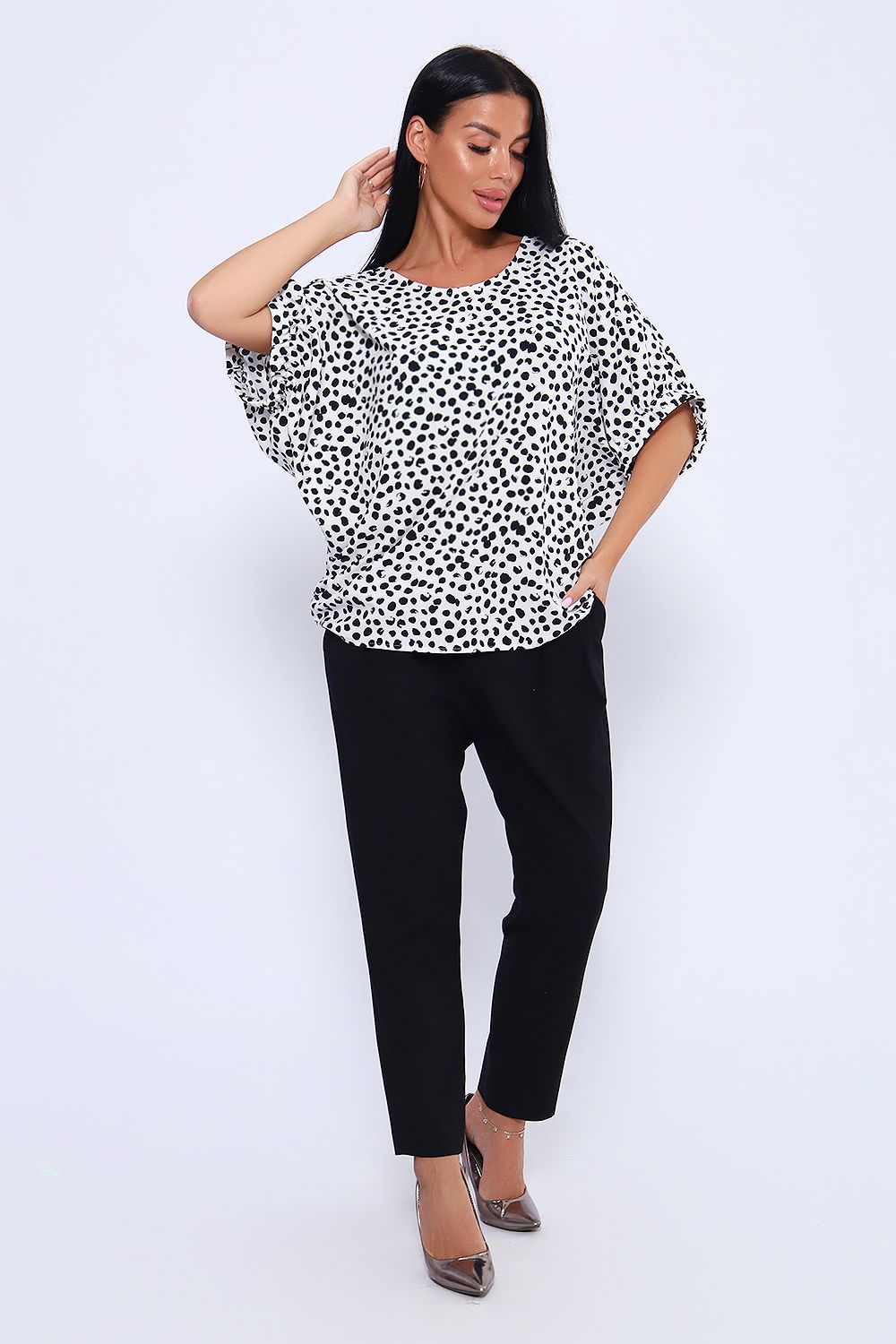 Просторная и удобная блузка из ткани индо. Свободный крой и рукав - летучая мышь, присобранный на резинку, делают эту модель актуальной для любой фигуры. Округлая горловина окантована хлопчатобумажной бейкой, длина рукава указана в замерах по плечу от горловины. Длина блузки чуть ниже линии бедра, по боковым швам низ изделия присборен. Легкая и не мнущаяся ткань индо обеспечивает удобство и комфорт при носке. Благодаря содержанию вискозы в составе ткани, блузка не электризуется и не липнет к телу. Базовые расцветки помогут создать комбинацию и с брюками, и с юбкой, на любой случай жизни.