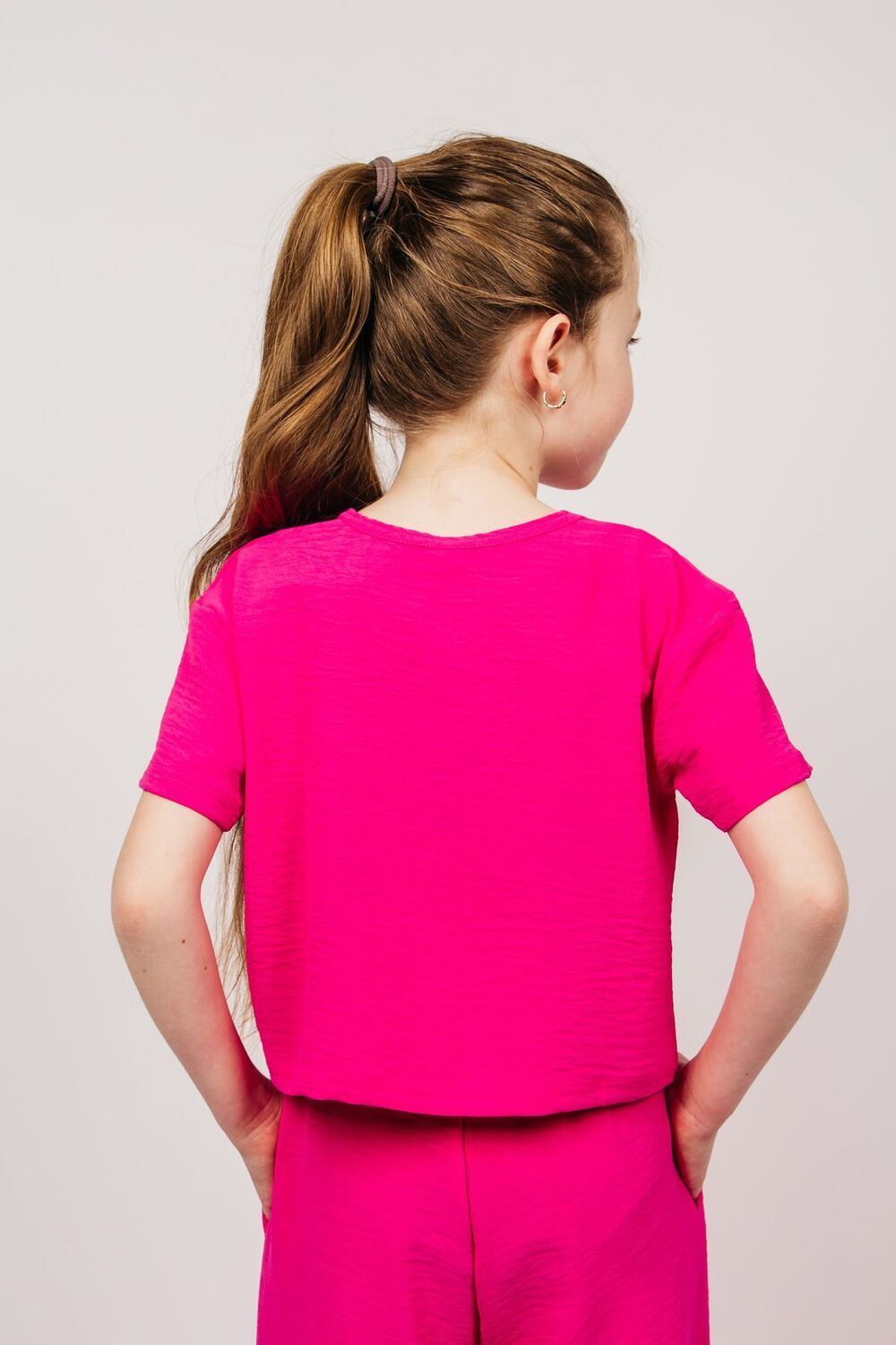 Блузка укороченная для девочки выполнена из качественной ткани «Сингапур», свободный прямой крой. Блузка сочетает в себе простоту и элегантность, подходит как для повседневной носки, так и для создания праздничного образа. Ткань приятна на ощупь, легкая и прочная. Отлично сочетается в шортами арт. 0210, брюками арт. 0110. Блузка проста в уходе, не склонна к заломам. Материал износоустойчив, не линяет, ткань сохнет достаточно быстро, не требует утюжки - лёгкие и невесомые, не будут стеснять движения. Уход за изделием: бережная стирка до 30 градусов; нельзя отбеливать; деликатный отжим; гладить с изнанки. Возможна усадка.