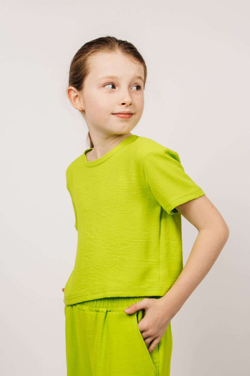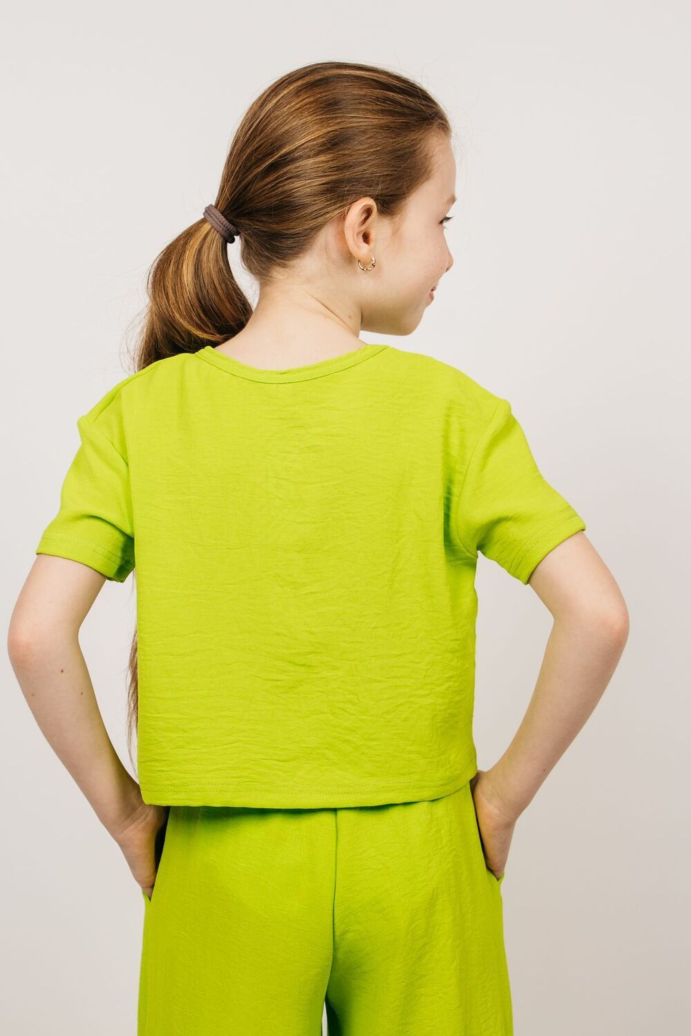 Блузка укороченная для девочки выполнена из качественной ткани «Сингапур», свободный прямой крой. Блузка сочетает в себе простоту и элегантность, подходит как для повседневной носки, так и для создания праздничного образа. Ткань приятна на ощупь, легкая и прочная. Отлично сочетается в шортами арт. 0210, брюками арт. 0110. Блузка проста в уходе, не склонна к заломам. Материал износоустойчив, не линяет, ткань сохнет достаточно быстро, не требует утюжки - лёгкие и невесомые, не будут стеснять движения. Уход за изделием: бережная стирка до 30 градусов; нельзя отбеливать; деликатный отжим; гладить с изнанки. Возможна усадка.