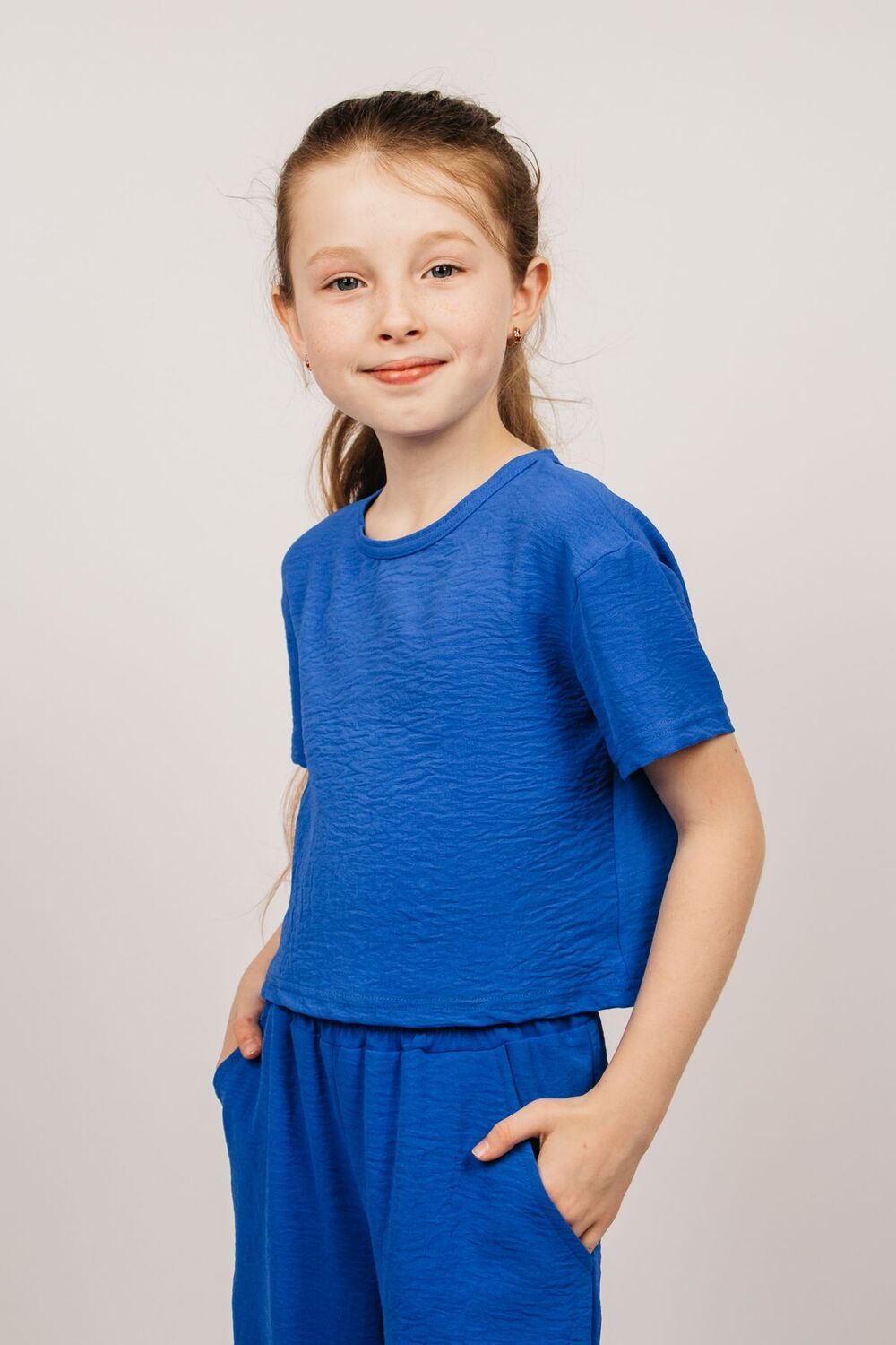 Блузка укороченная для девочки выполнена из качественной ткани «Сингапур», свободный прямой крой. Блузка сочетает в себе простоту и элегантность, подходит как для повседневной носки, так и для создания праздничного образа. Ткань приятна на ощупь, легкая и прочная. Отлично сочетается в шортами арт. 0210, брюками арт. 0110. Блузка проста в уходе, не склонна к заломам. Материал износоустойчив, не линяет, ткань сохнет достаточно быстро, не требует утюжки - лёгкие и невесомые, не будут стеснять движения. Уход за изделием: бережная стирка до 30 градусов; нельзя отбеливать; деликатный отжим; гладить с изнанки. Возможна усадка.