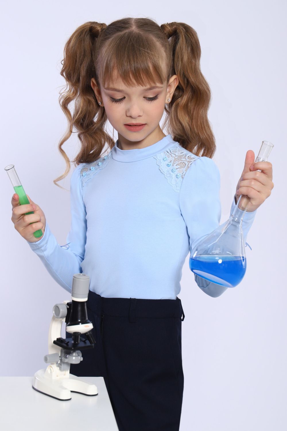 Блузка для девочки Алена арт. 13143 - светло-голубой