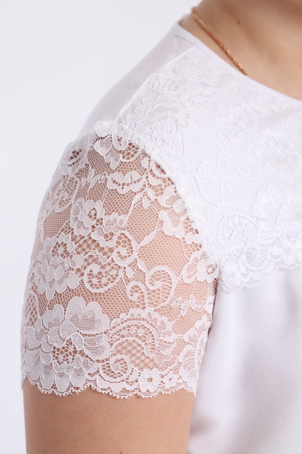 Блузка трикотажная для девочки - вторая полнота! С красивой кружевной кокеткой и верхним слоем из шифона в тон блузке. Рукав кототкий - кружевной. Застегивается сзади на пуговку. Дополнительный шифоновый слой позволяет скрыть все нюансы фигуры. Силуэт свободный. Смотрится нарядно и подходит как для повседневной носки, так и для торжественных мероприятий. Будет находкой в гардеробе стильной школьницы. Выполнена из высококачественного турецкого трикотажного полотна состава 95% хлопок, 5% эластан. Мягкий и нежный трикотаж приятен к телу. Подойдет как школьная форма, нарядная и даже повседневная одежда для девочки. Стильные, модные блузки могут быть использованы как элемент к школьным сарафанам, юбкам и брюкам. Нарядные и строгие блузки школьные помогут сделать наряд школьницы привлекательным и элегантным.