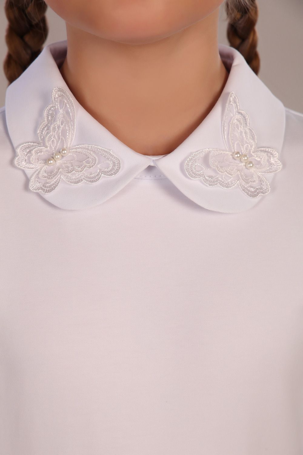 Элегантная и нарядная блузка для вашей маленькой принцессы! Нежная трикотажная блуза для девочки станет замечательным выбором для 1 сентября. Ведь осень уже за углом и модная школьная форма для детей - это то, что совсем скоро понадобится каждому школьнику. Отложной воротник и рукава декорированы изящными кружевными бабочками. Стильная кружевная кофта лонгслив от бренда JerseyLab - это хлопок, нежный трикотаж, который прекрасно дышит и не вызовет аллергию, идеальный вариант для школы для детей и подростков. Такая блузка с длинным рукавом отлично подойдет и как повседневная детская кофточка и как нарядная блузка на праздник или на выпускной. Она превосходно будет смотреться и с различными детскими юбками, и со стильными и удобными брюками. Также очень стильный образ можно получить, сочетая ее со школьным или классическим сарафаном, или комбинезоном. Нежное кружево вокруг горловины придает изящность и оригинальность. Комбинируя эту блузу с различными жакетами и кардиганами, ваша маленькая модница сможет носить ее и в прохладное время года, как в демисезон, так и в зимний период. Пусть ваша стильняшка всегда чувствует себя самой красивой, а мы позаботимся о ее комфорте и безопасности, производя самую стильную и качественную одежду для детей!