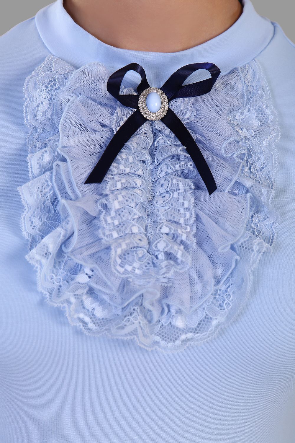 Блузка «Лилия» с кружевным жабо и стильной брошью станет прекрасным дополнением школьного гардероба девочки. Модель выполнена из нежного легкого хлопка Блузка идеально сядет по фигуре. Ребенку будет легко надевать и снимать блузку через голову - т.к. здесь нет застежки. А благодаря откидному жабо - можно будет носить с любым сарафаном, юбкой или брюками.