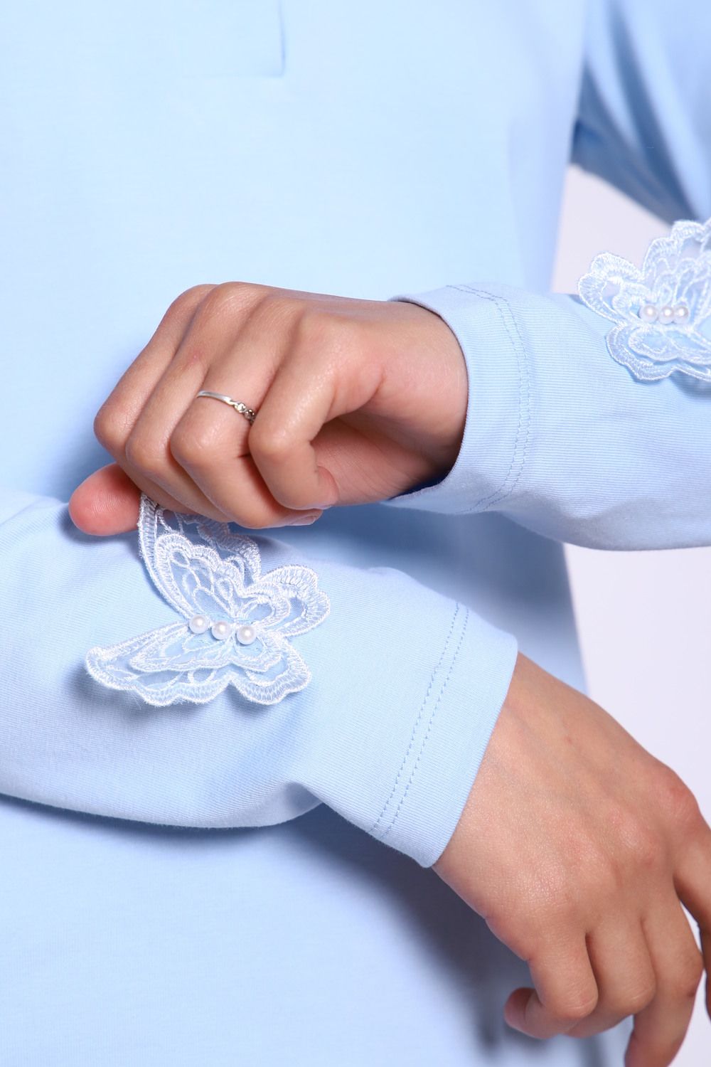 Элегантная и нарядная блузка для вашей маленькой принцессы! Нежная трикотажная блуза для девочки с кружевом станет замечательным выбором для 1 сентября. Ведь осень уже за углом и модная школьная форма для детей - это то, что совсем скоро понадобится каждому школьнику. Стильная кружевная кофта лонгслив от бренда JerseyLab - это хлопок, нежный трикотаж, который прекрасно дышит и не вызовет аллергию, идеальный вариант для школы для детей и подростков. Такая блузка с длинным рукавом отлично подойдет и как повседневная детская кофточка и как нарядная блузка на праздник или на выпускной. Она превосходно будет смотреться и с различными детскими юбками, и со стильными и удобными брюками. Также очень стильный образ можно получить, сочетая ее со школьным или классическим сарафаном или комбинезоном. Нежное кружево в виде бабочек придает изящность и оригинальность. Комбинируя эту блузу с различными жакетами и кардиганами, ваша маленькая модница сможет носить ее и в прохладное время года, как в демисезон так и в зимний период. Пусть ваша стильняшка всегда чувствует себя самой красивой, а мы позаботимся о ее комфорте и безопасности, производя самую стильную и качественную одежду для детей!