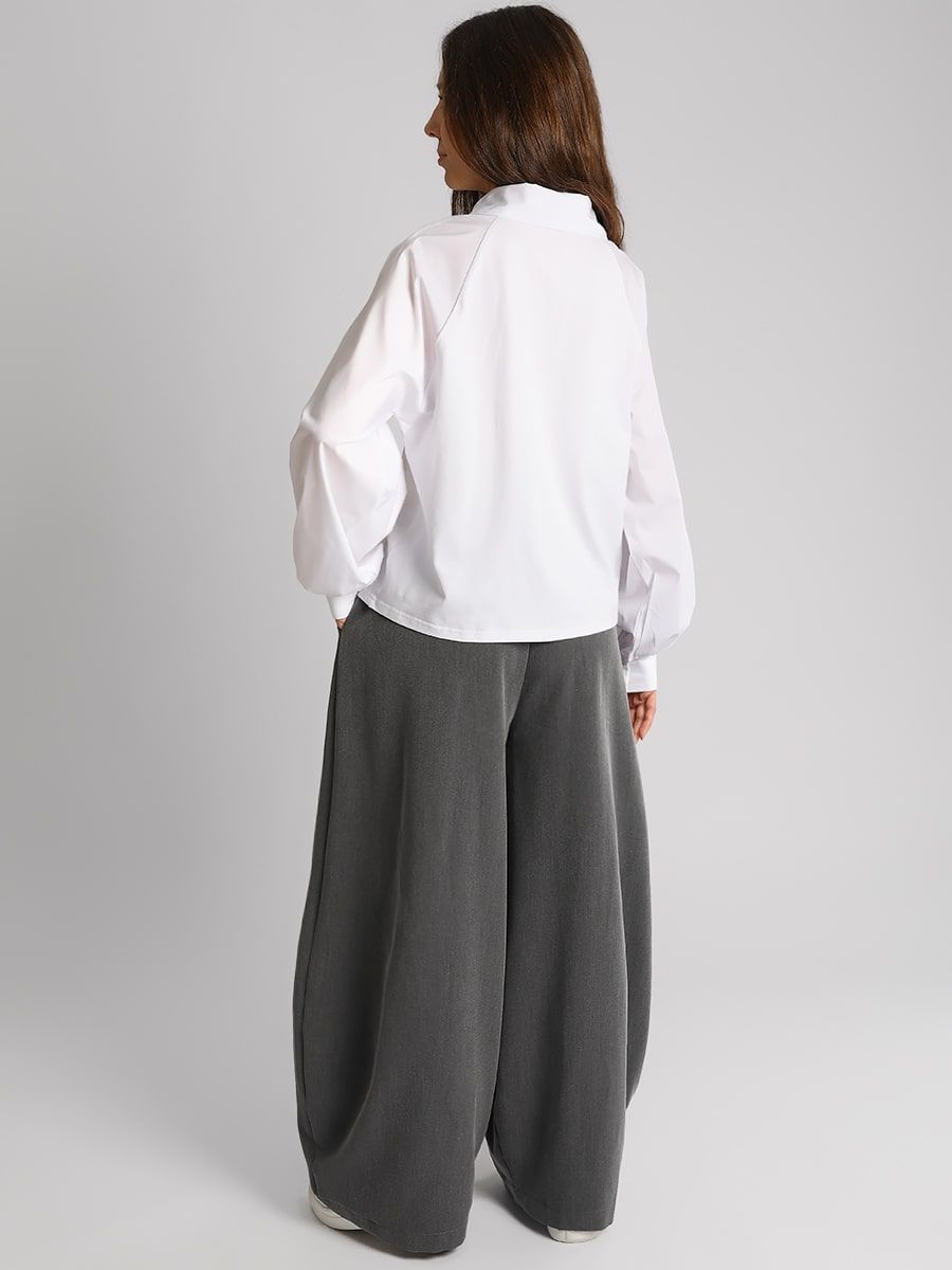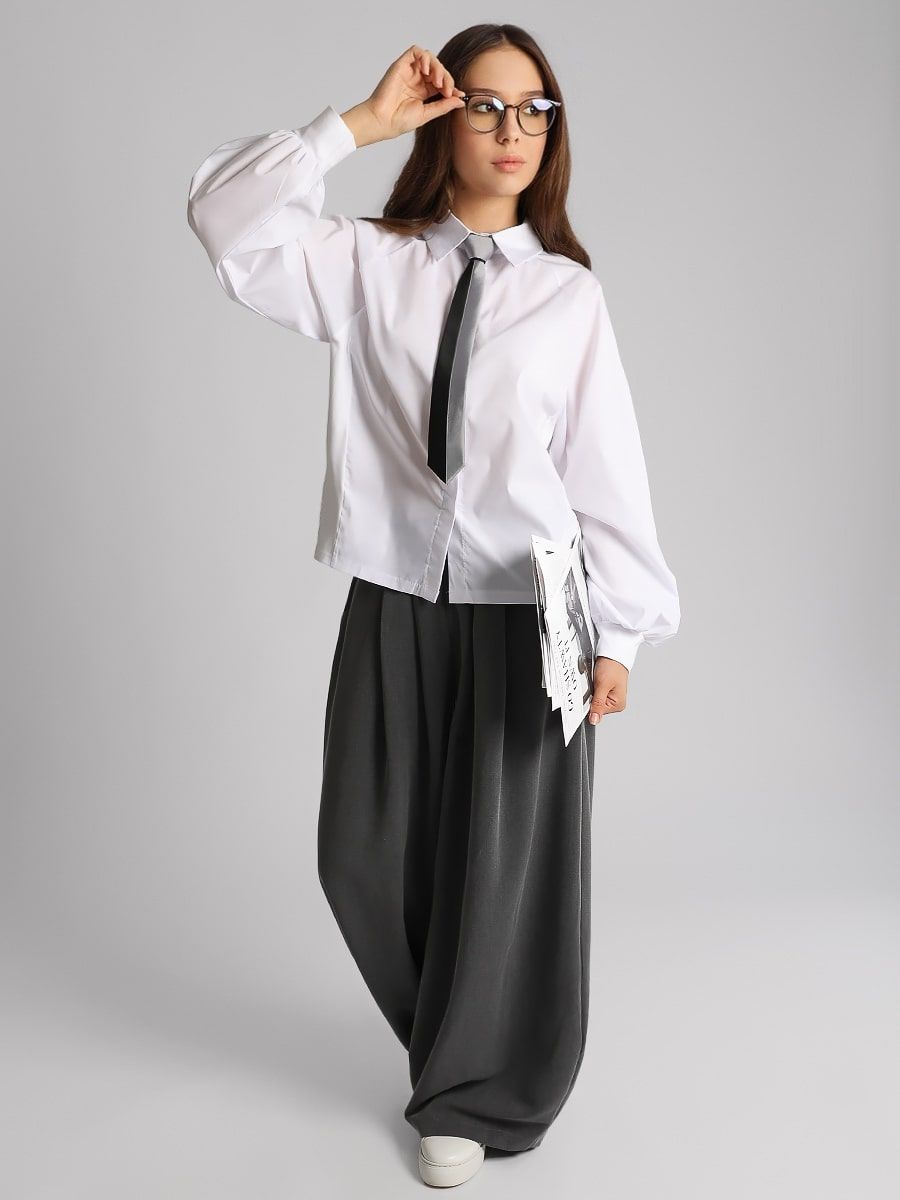 Блузка для девочки Соль&Перец, на пуговицах, из натурального хлопка. Блузка свободного кроя, с потайной планкой, задняя часть выполнена из эластичного трикотажа. Рукав реглан, широкий, с эластичной манжетой. Блузка прекрасно сочетается с брюками или с юбкой и подчеркнёт индивидуальный стиль девочки.