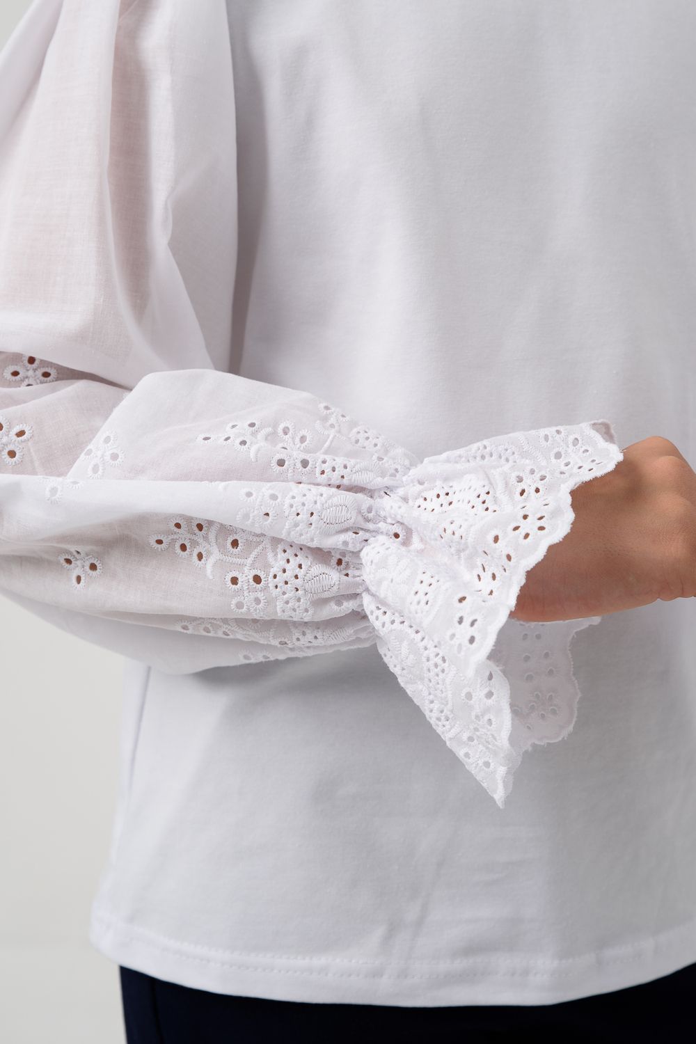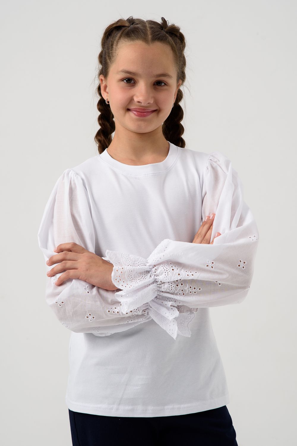 Школьная блузка с длинными, пышными рукавами, выполненными из хлопковой ткани шитье. Джемпер украсит и дополнит любой образ в школу. Красивый джемпер для девочек подростков на каждый день.