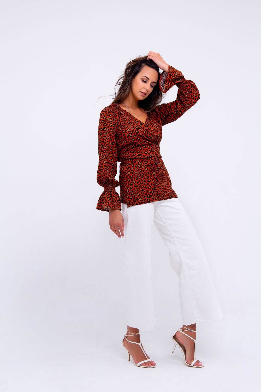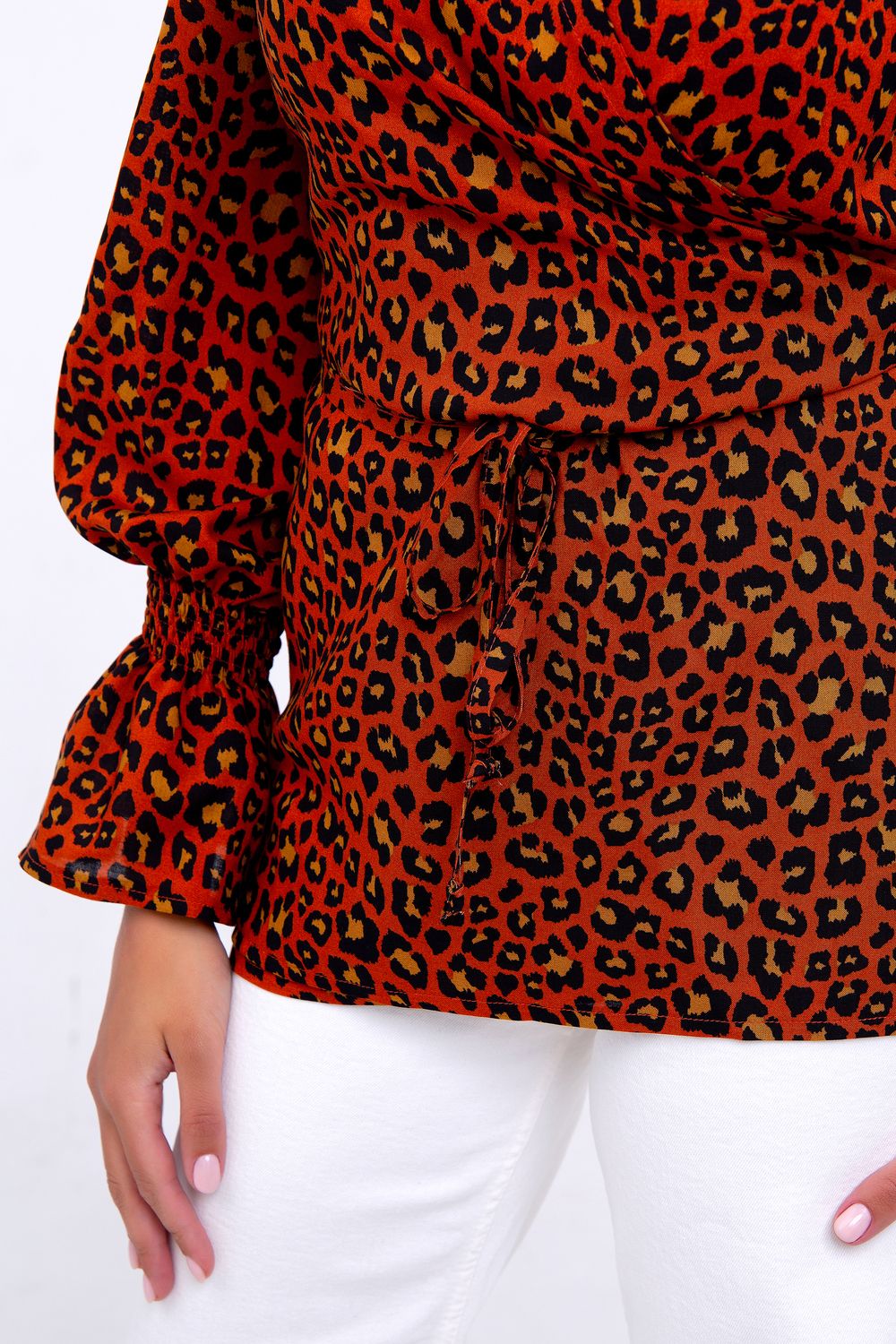 Пояс леопардовой блузки регулируется завязкой, которая позволяет подчеркнуть талию и создать акцент на своих преимуществах. Этот элемент декора придаст изюминку вашему образу и сделает его незабываемым.