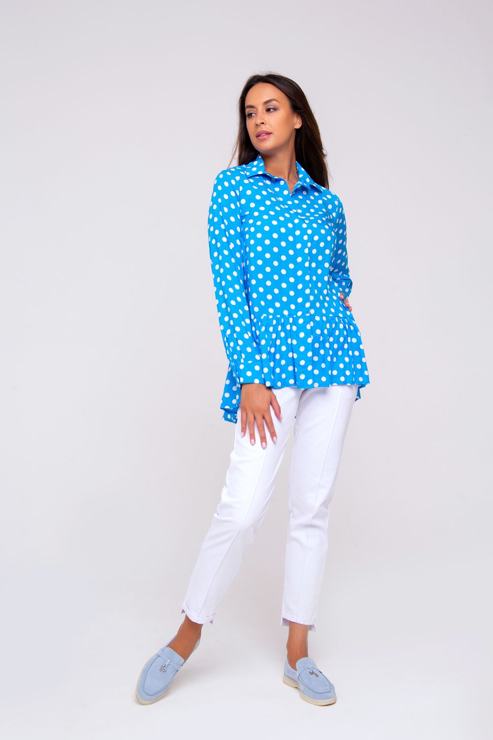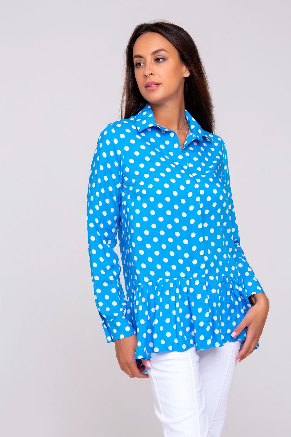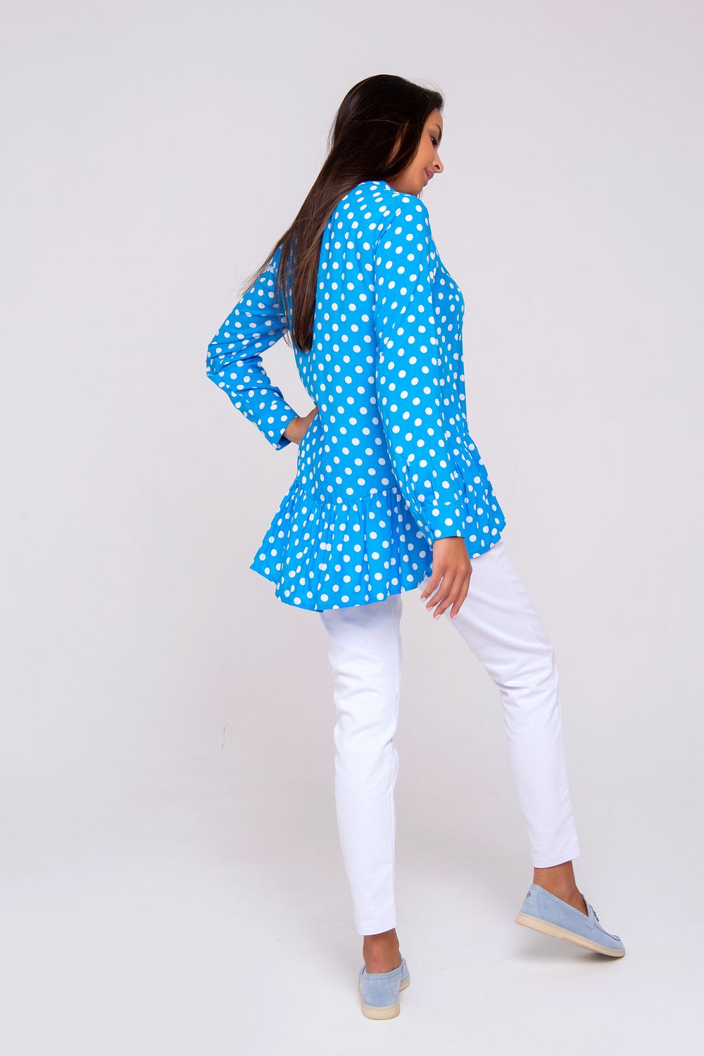 Блузка с длинным рукавом и баской 320NAV - голубой+горох
