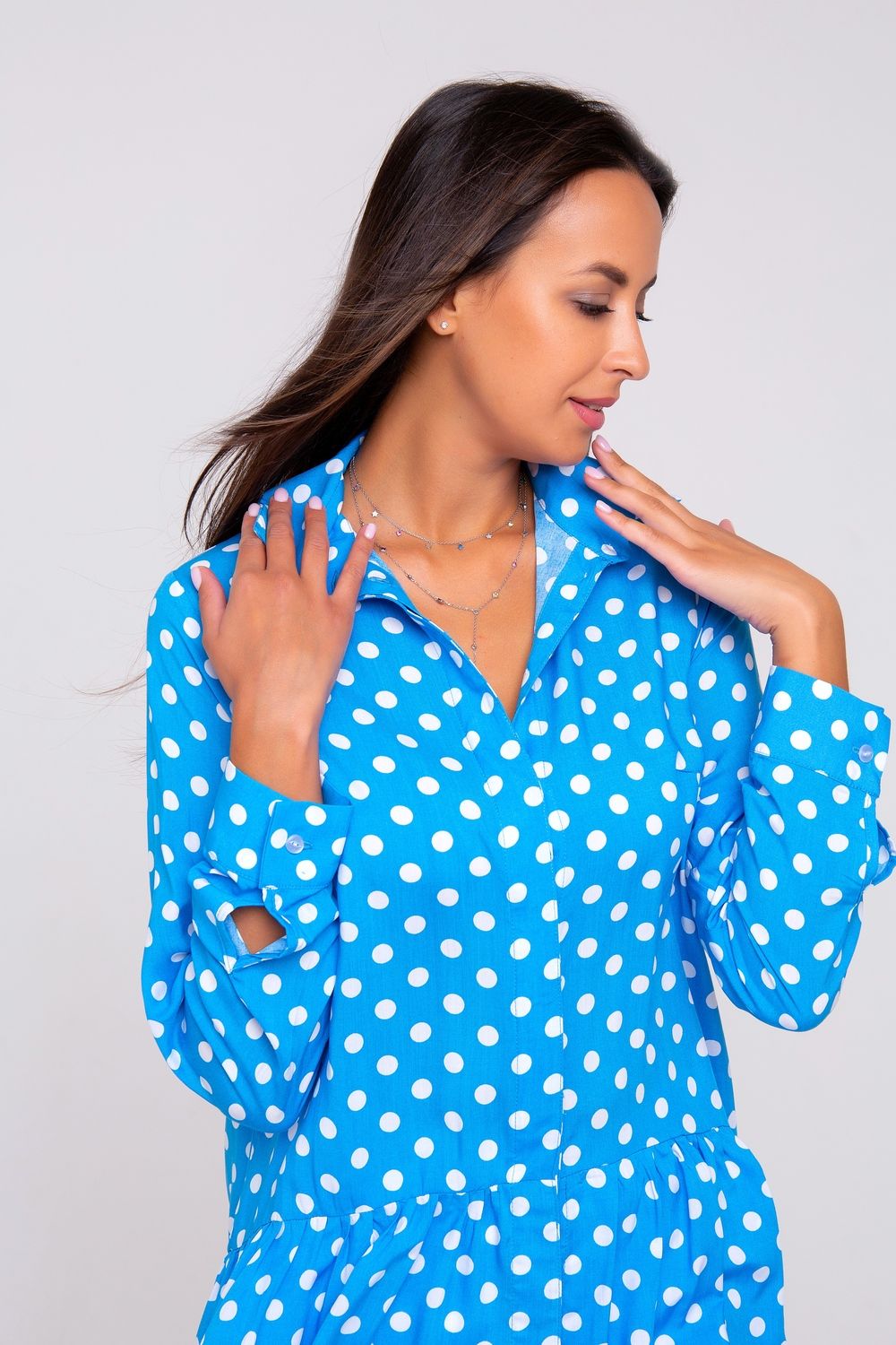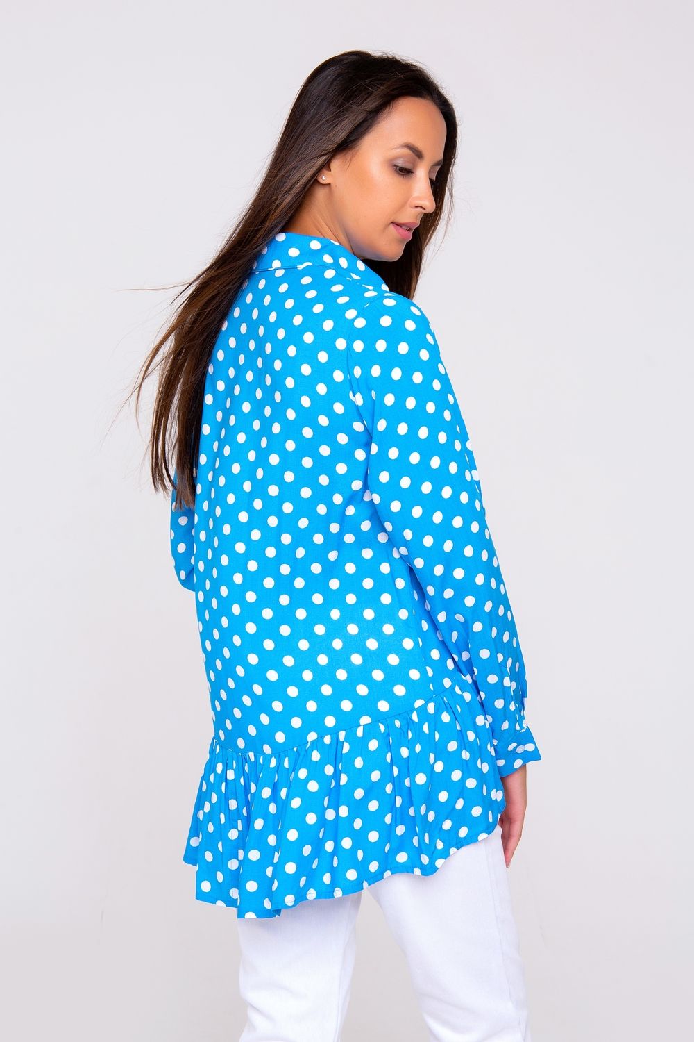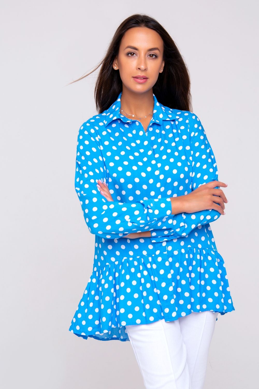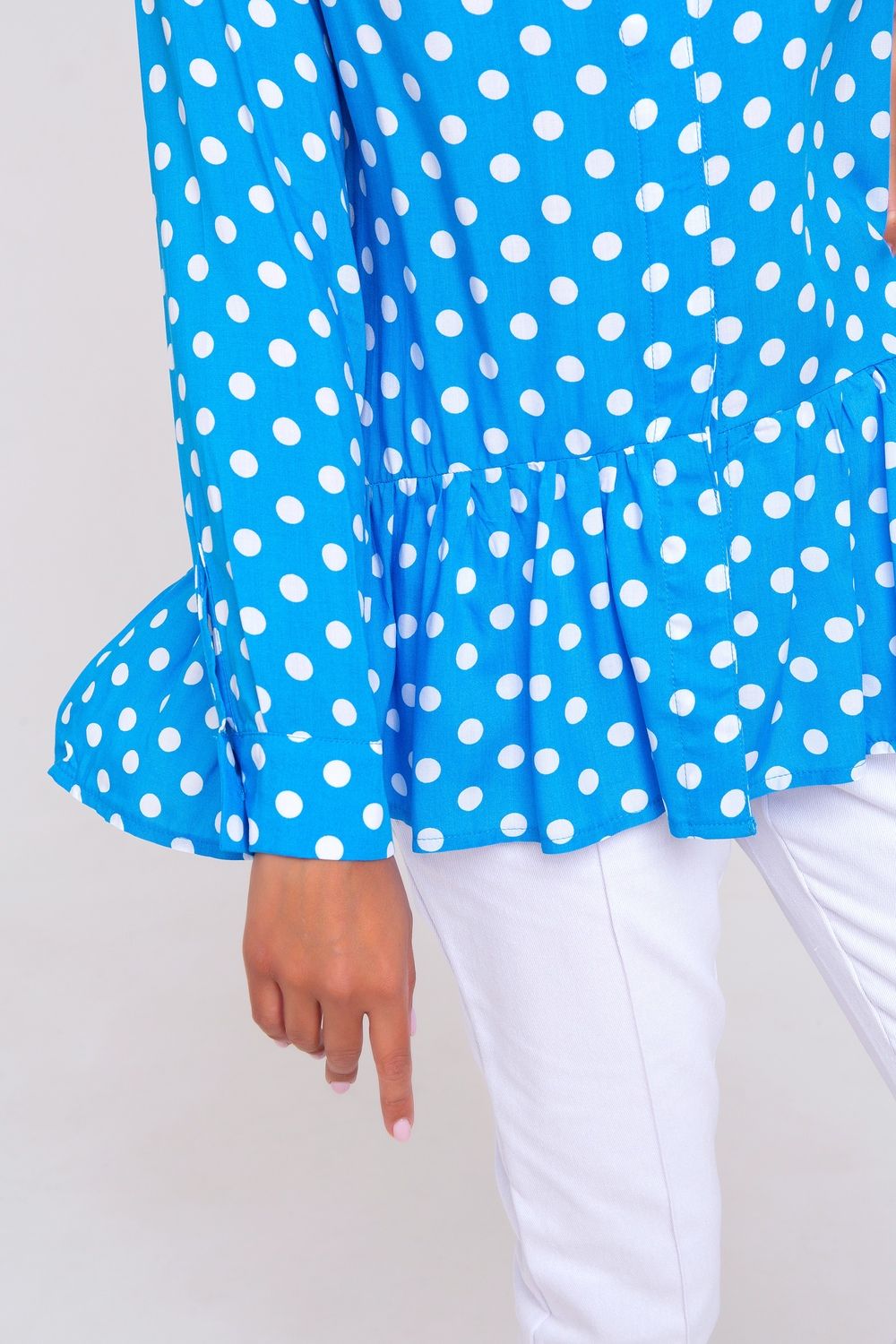Блузка с длинным рукавом и баской 320NAV - голубой+горох