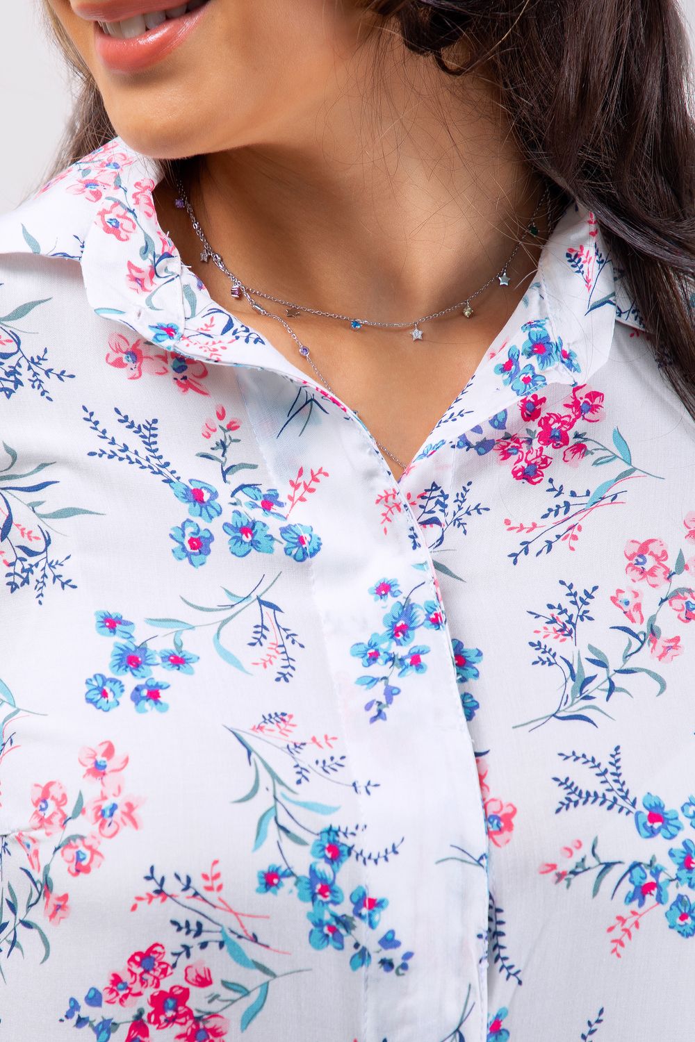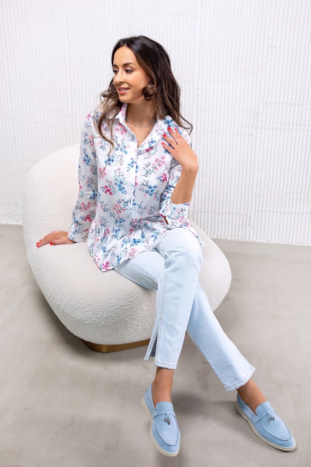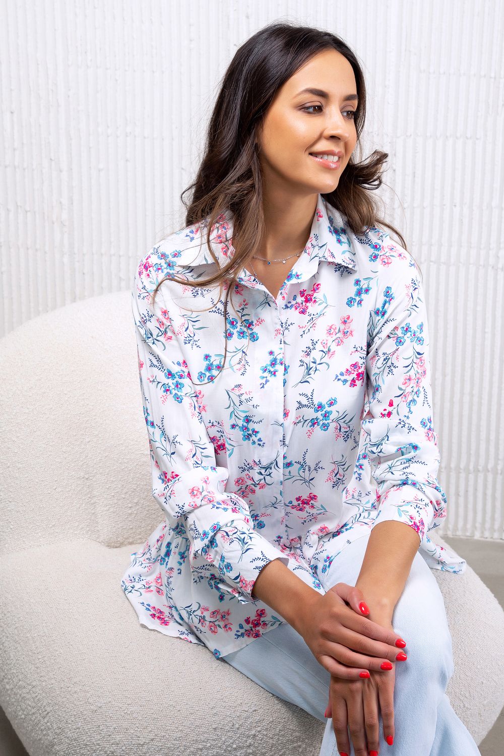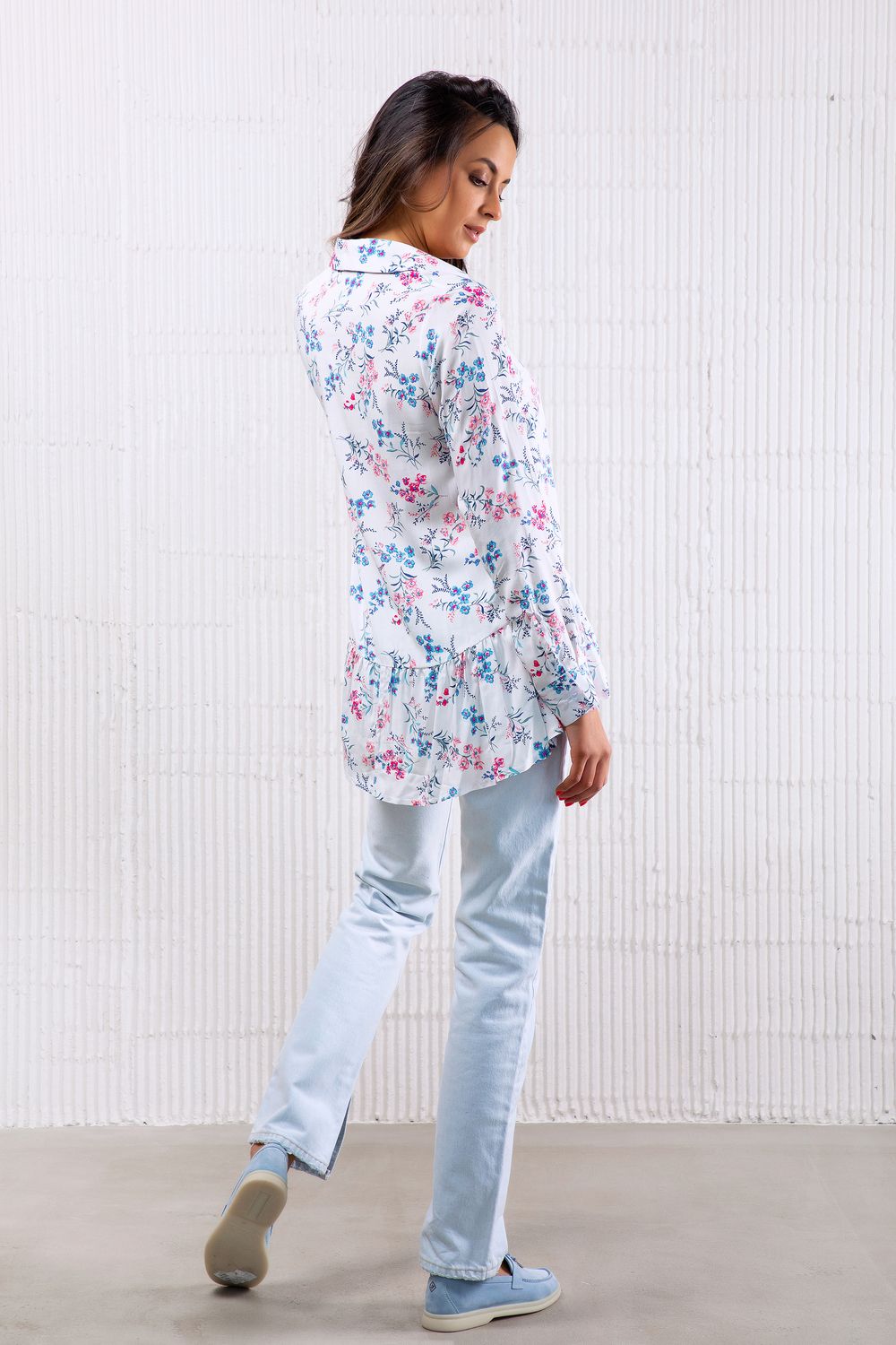 Блузка с длинным рукавом и баской 320WHT - белый/цветы