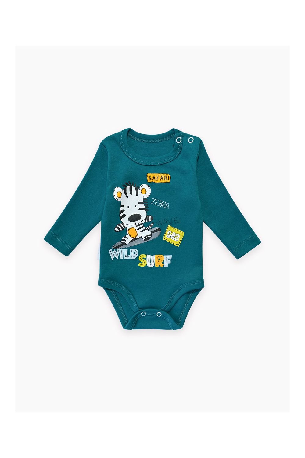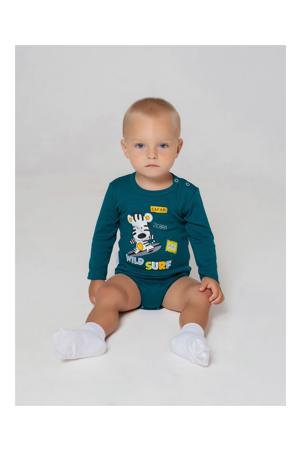 Боди из коллекции «Барт» для новорожденных и малышей, выполнено из интерлока (100% хлопок), материал средней плотности, нежный и эластичный, пропускает воздух и сохраняет тепло. Застежка на клёпки в плечевом шве и снизу позволит в считанные секунды переодеть малыша. Стильный принт, нанесённый методом шелкографии на ткани. Модель будет идеально сочетаться со штанишками из одноимённой коллекции.