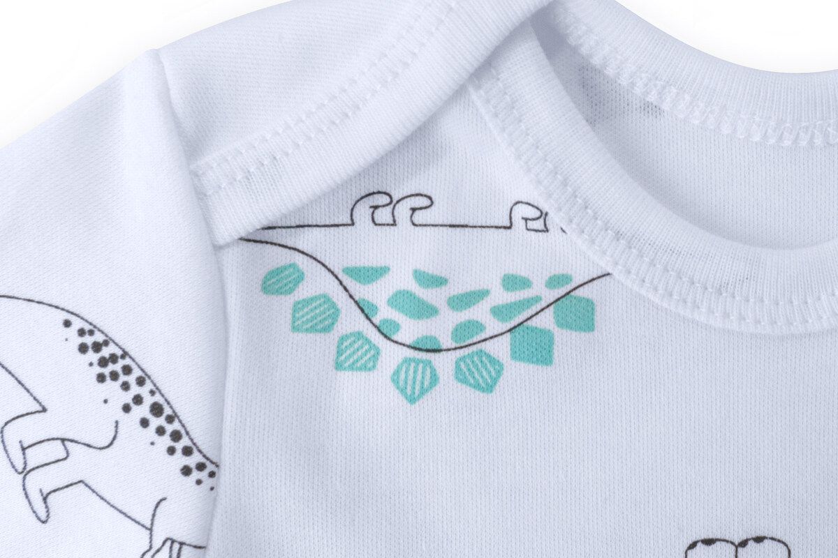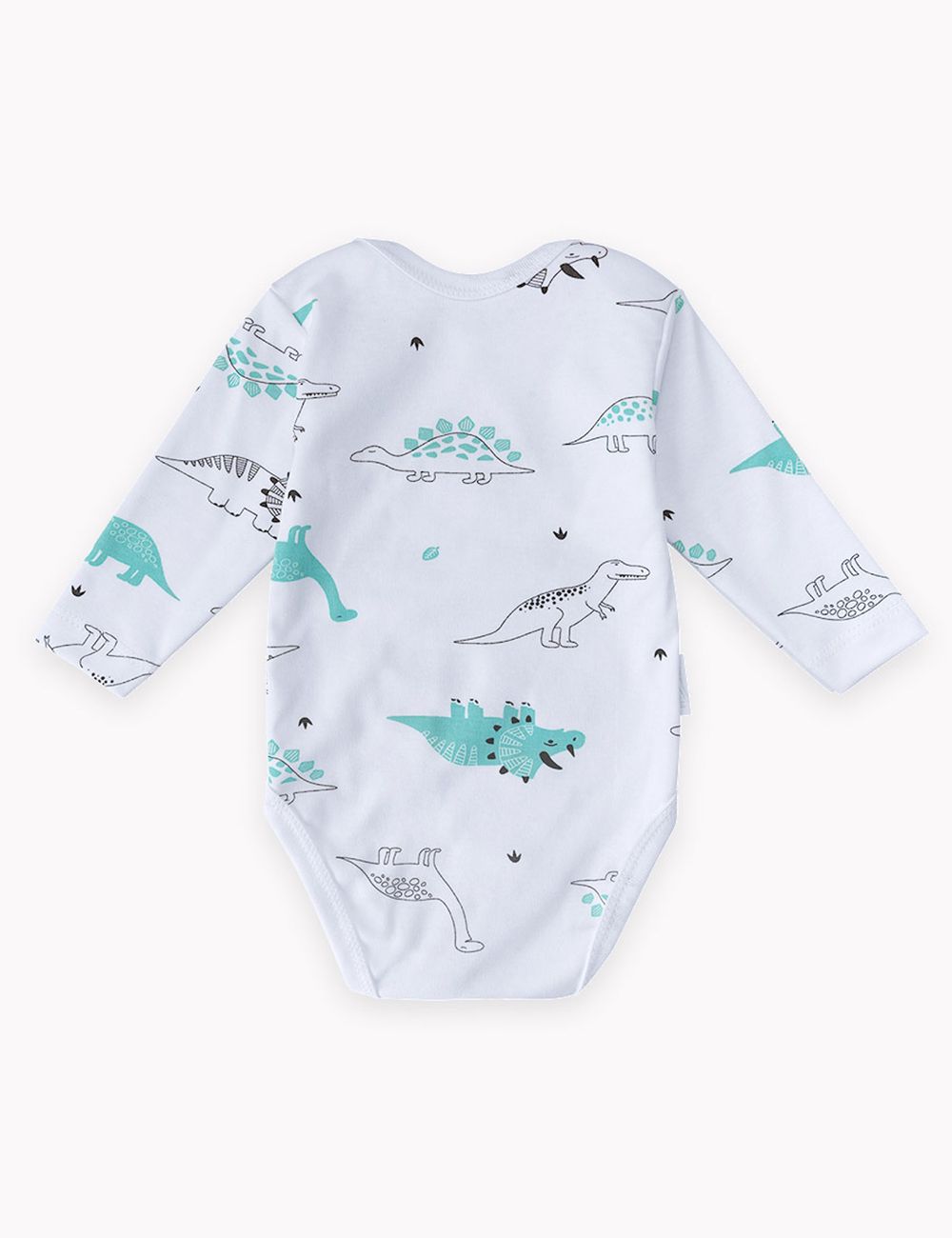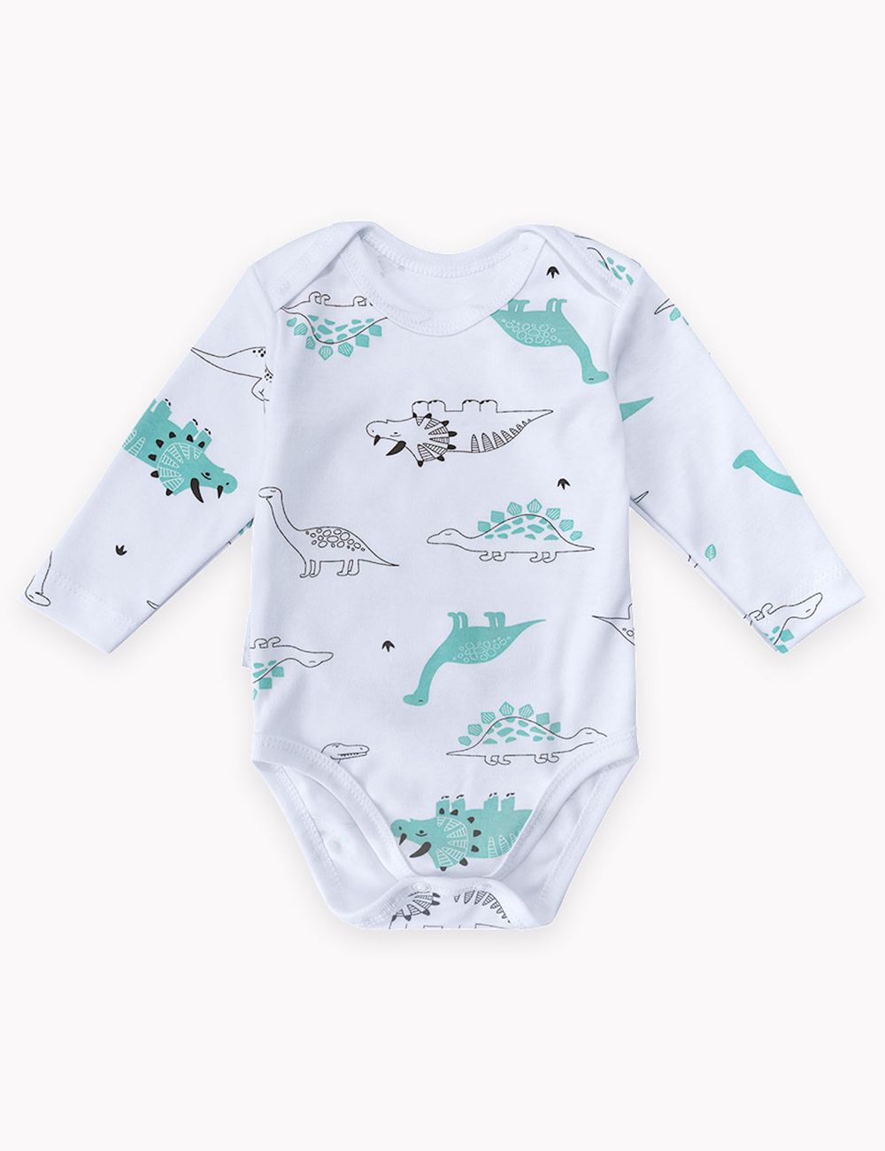 Боди с длинным рукавом из коллекции «Дин» предназначен для новорожденных и малышей, выполнен из интерлока (100% хлопок), материал средней плотности, нежный и эластичный, пропускает воздух и сохраняет тепло. Данная модель боди позволит в считанные секунды переодеть малыша. Стильный принт на ткани. Модель будет идеально сочетаться со штанишками или ползунками из одноимённой коллекции.