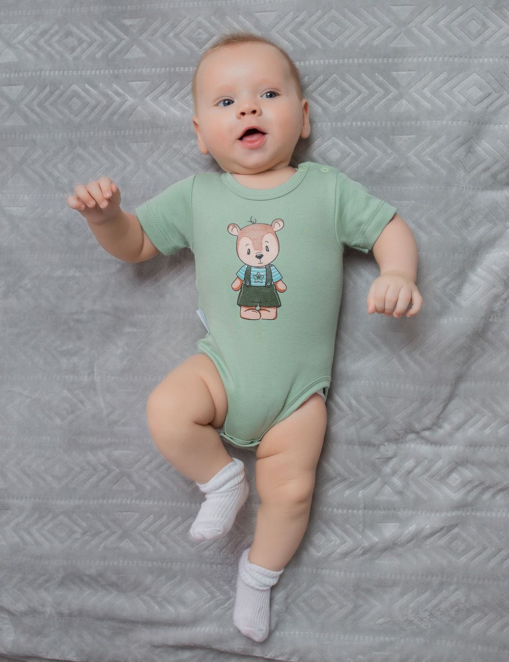 Боди с коротким рукавом из коллекции «Одди» предназначен для новорожденных и малышей, выполнен из интерлока (100% хлопок), материал средней плотности, нежный и эластичный, пропускает воздух и сохраняет тепло. Застежка на клёпки в плечевом шве и снизу позволит в считанные секунды переодеть малыша. Стильный принт, нанесённый методом шелкографии на ткани. Модель будет идеально сочетаться со штанишками из одноимённой коллекции.