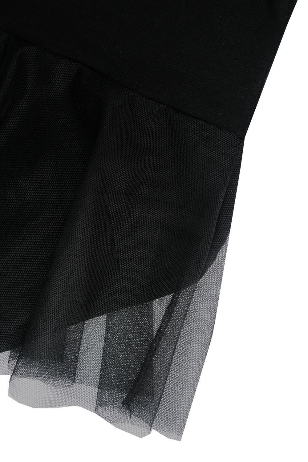 Боди для девочки из кулирки. Горловина круглая, по спинке слегка углубленная. Горловина и срез ножек окантованы основным полотном. Рукав втачной, длинный. По линии талии - юбка из фатина.