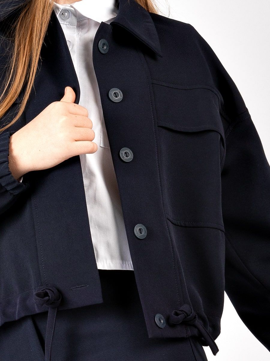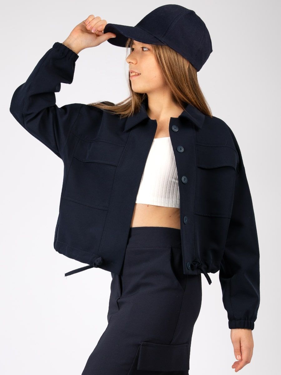 Бомбер для девочки Соль&Перец на пуговицах с потайной планкой, отложным воротником и большими накладными карманами с клапаном. Рукава на мягкой эластичной резинке, низ бомбера дополнен кулиской. Бомбер выполнен из износостойкой костюмной ткани «Босс» которая долго сохраняет форму и привлекательный внешний вид. Бомбер прекрасно сочетается с юбками и брюками. Подойдёт для посещения школы, официального или праздничного мероприятия.