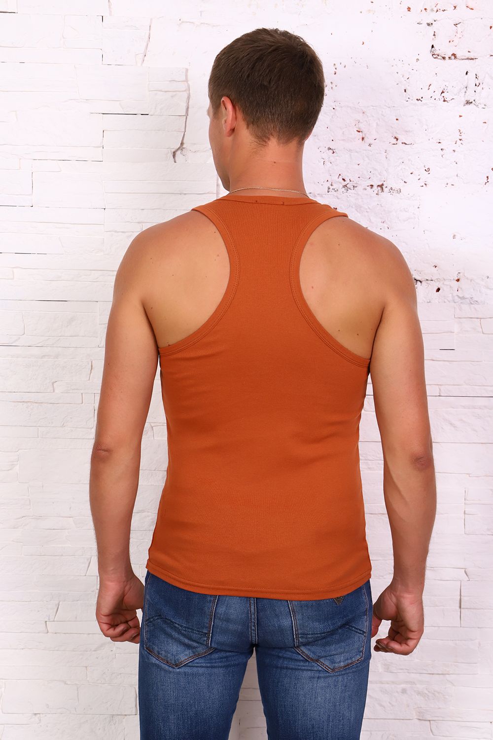 Мужская борцовка из рибаны. Майка-борцовка без рукавов, окантовка в тон.