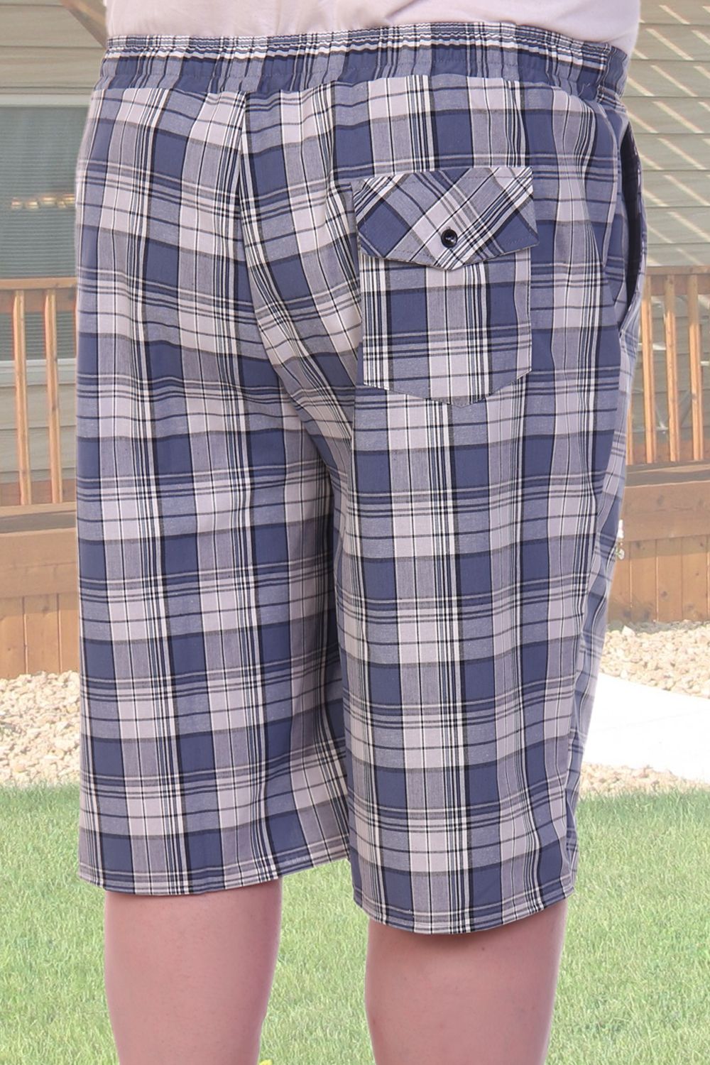 Мужские бриджи. Клетчатый дизайн, ткань-шотландка, 100% хлопок. Свободного покроя. Пояс отрезной, собранный на широкой резинке с отстрочкой. Карманы внутренние, боковые и 1 задний накладной карман с клапаном. Длина чуть ниже колена. Данный товар по цвету не подбирается.