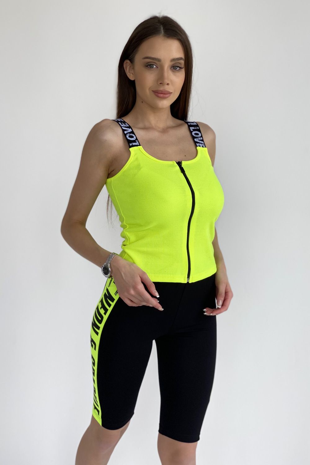 Бриджи-велосипедки облегающие, длинной выше колена, сверху на резинке. Вдоль боковых швов расположены лампасы из отделочного полотна.