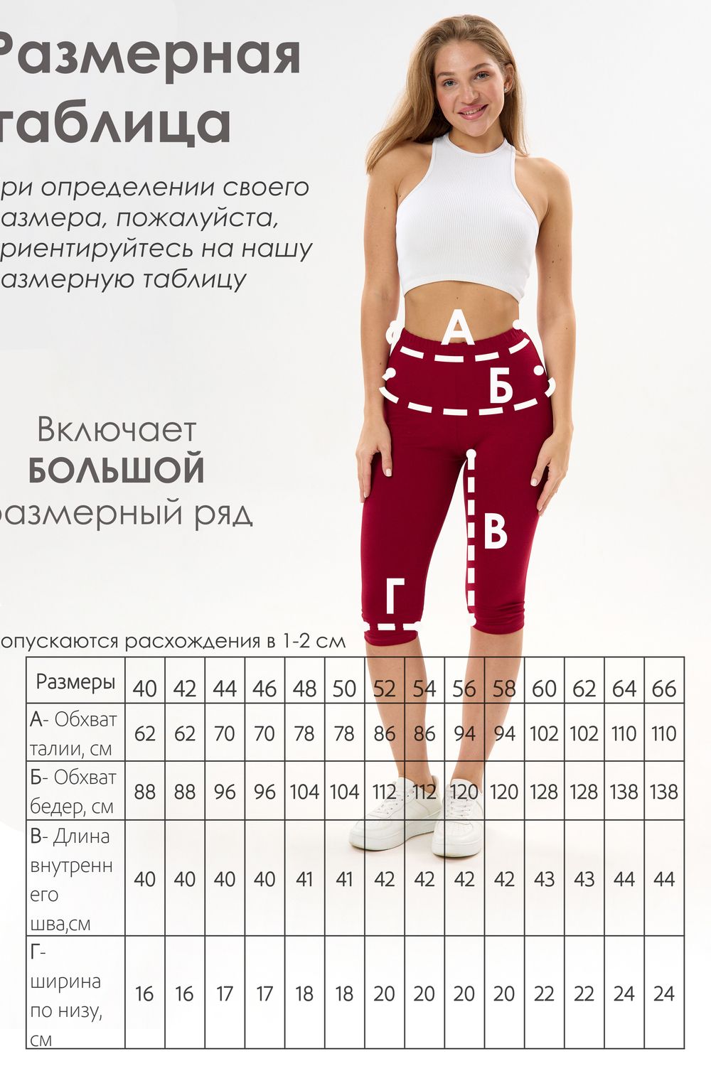 Бриджи женские летние отличный вариант базового гардероба каждой девушки. В пояс вшита широкая резинка. Капри на 95% состоит из хлопка, он экологичен, воздухопроницаем и гипоаллергенен. И из 5 % лайкры, благодаря лайкре ткань слабо поддается растяжению и усадке. Размерная сетка модели включает большие размеры. Подойдет всем девушкам и женщинам, для полных или для беременных. Шорты длинные облегающие с высокой посадкой идеально садится по фигуре, такой фасон скрывает все недостатки. Их дышащая ткань и удобный крой позволяют чувствовать себя комфортно в любой ситуации, будь то короткая прогулка по парку или длительная поездка в поезде. А для любительниц активного спорта эти бриджи — отличный выбор. Они подходят для занятий бегом, йогой, фитнесом и другими тренировками, так как обладают хорошей растяжимостью благодаря добавлению лайкры в состав. Бриджи трикотажные предназначены и как домашняя одежда. Во время выполнения домашних дел, позволяет вам чувствовать себя комфортно и свободно. Эти бриджи идеально подойдут для работы в саду и огороде, обеспечивая необходимую свободу движений. Смотрится отлично с топом, футболкой или рубашкой, что делает их универсальным элементом вашего гардероба. На бриджи модные можно смело рассчитывать и в повседневной жизни, они подойдут на любой день или на пляж, когда вы хотите выглядеть стильно и при этом чувствовать себя комфортно. Эти бриджи станут вашим незаменимым помощником в повседневной жизни, сочетая комфорт и стиль. Создавайте яркие образы и наслаждайтесь каждой минутой! Вся наша продукция сертифицирована.
