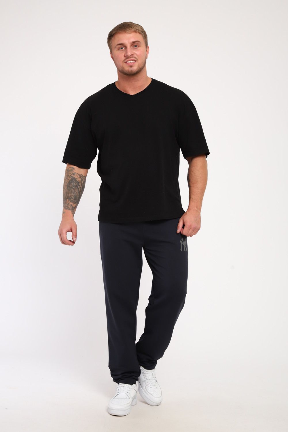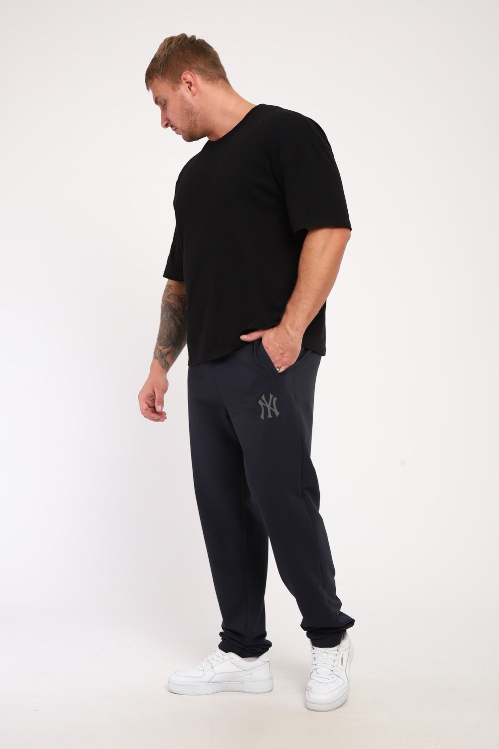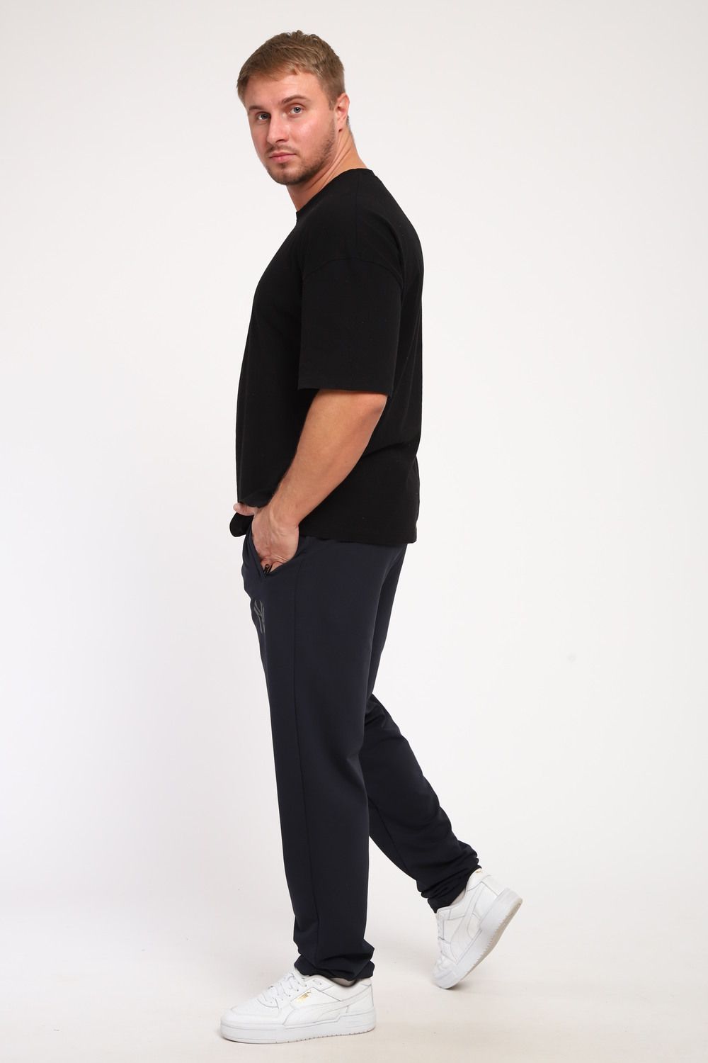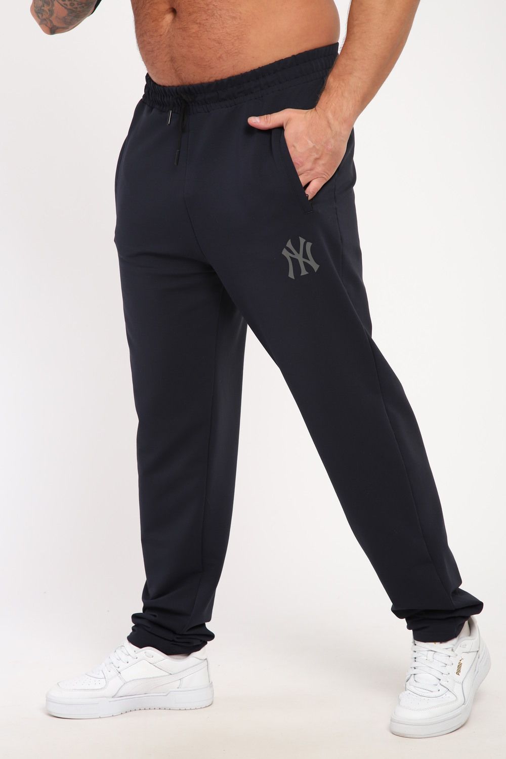 Moses. Мужские брюки из футера, прямой покрой, по бокам карман на молнии, пояс на резинке и регулируемом шнурком. Подходят для повседневной носки.