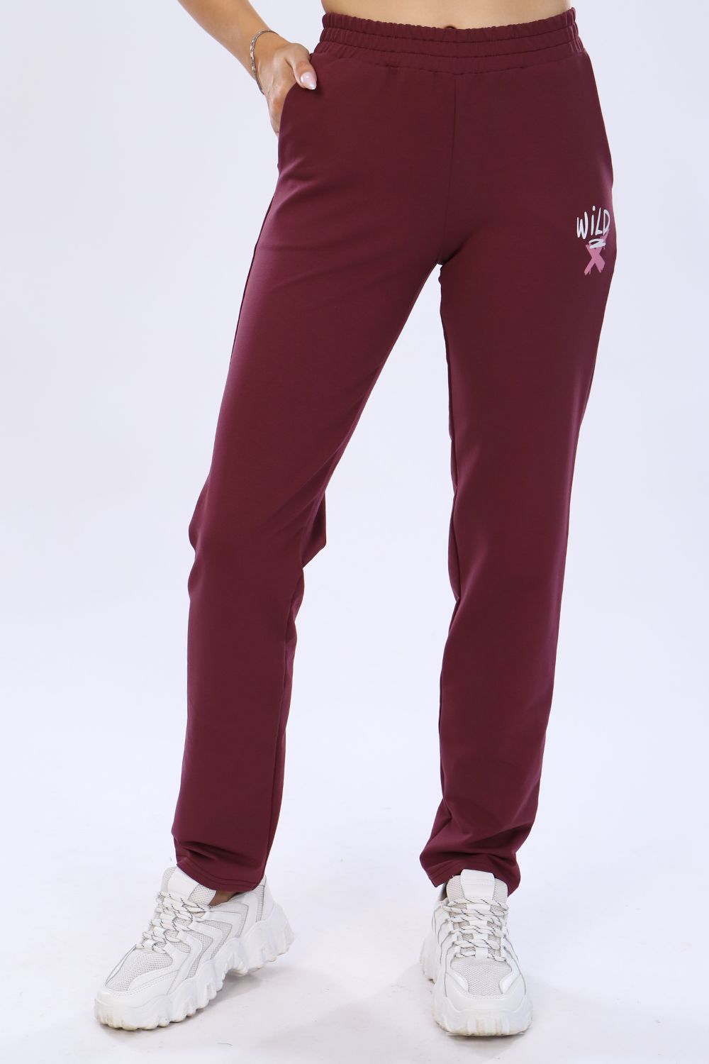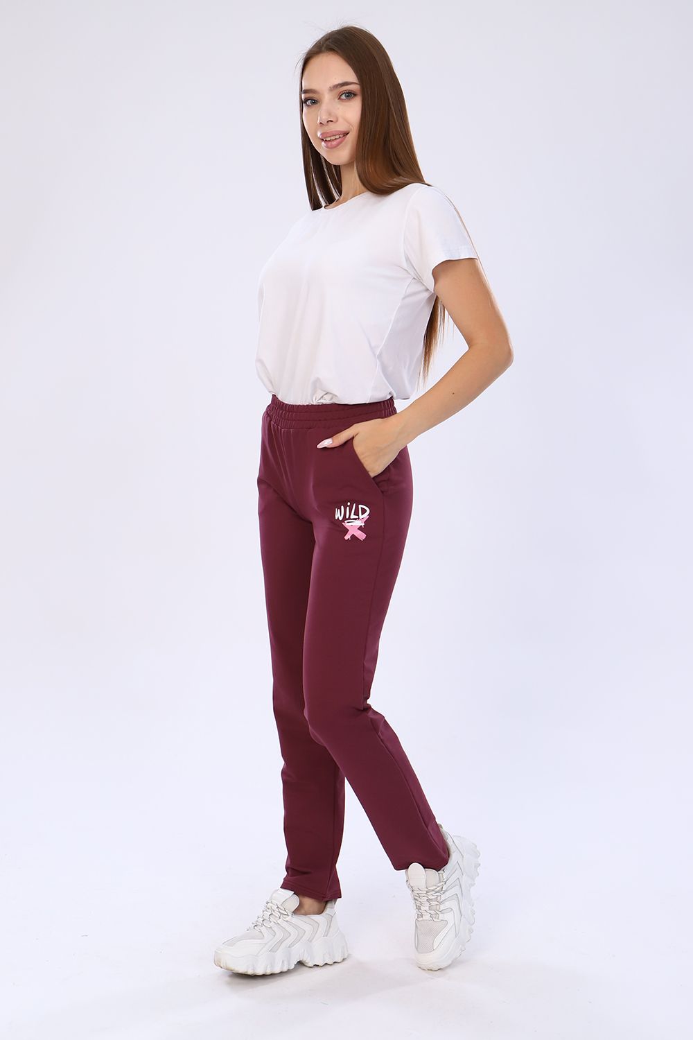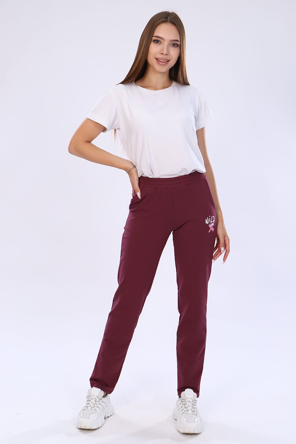 Женские брюки выполнены из футера 2-х нитка, по бокам карманы, эластичный пояс. Отлично подходят для занятий спортом, повседневной деятельности, ежедневных прогулок и активного отдыха. Длина брюк по боковому шву с учетом пояса.