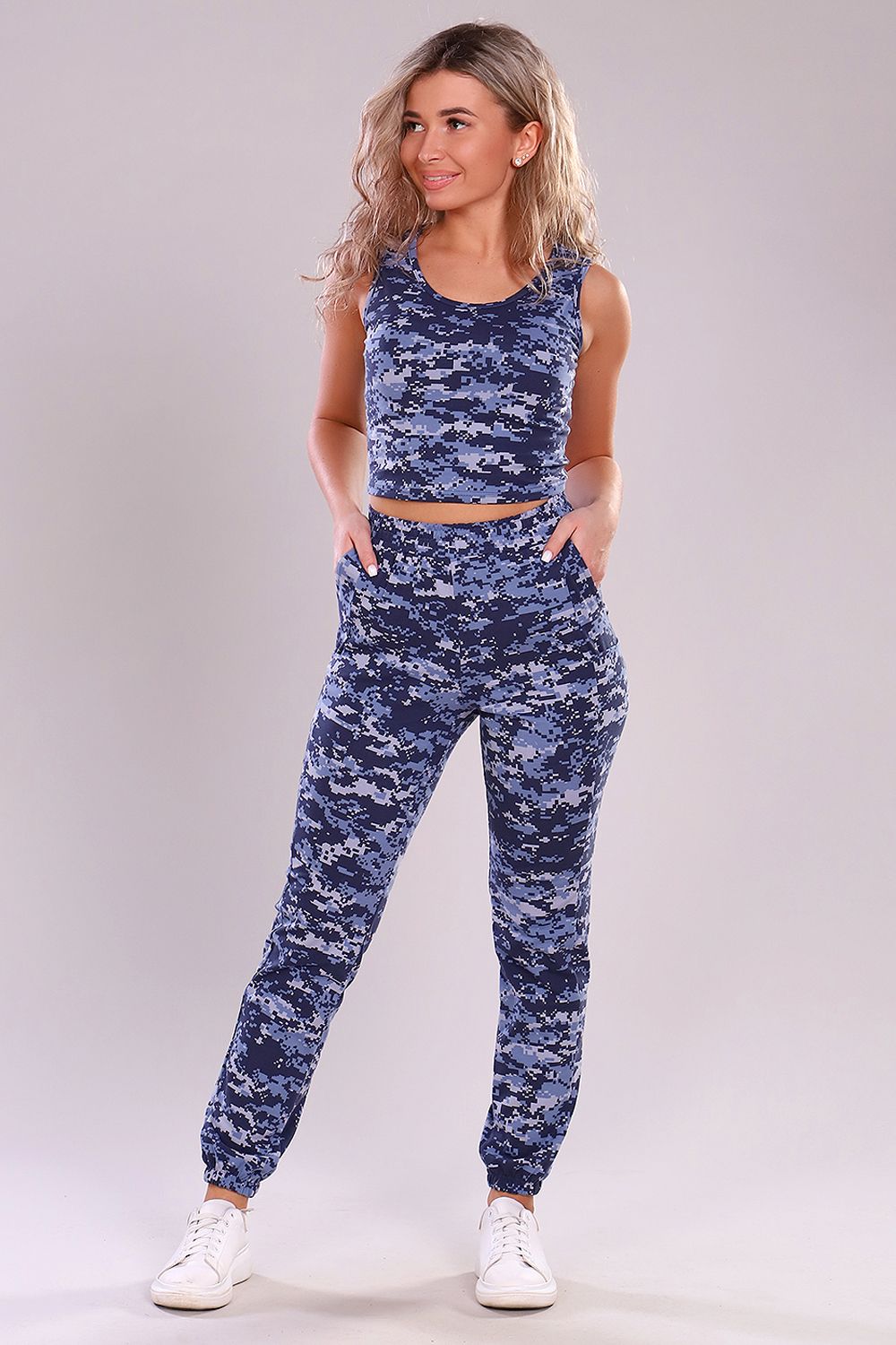 Брюки женские с карманами. Данная модель выполнена из эластичного трикотажного полотна кулирка с лайкрой. Верхняя часть изделия с поясом под резинку шириной 5 см, отстроченной поясной машинкой в три строчки. Низ под резинку 2,5 см. По бокам присутствуют по два кармана. Отличная модель для прогулок и повседневной носки.