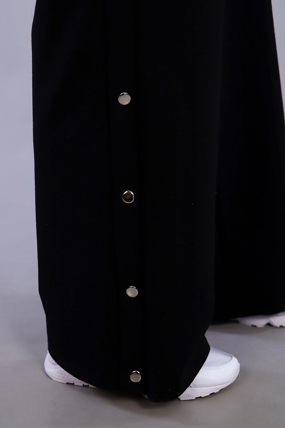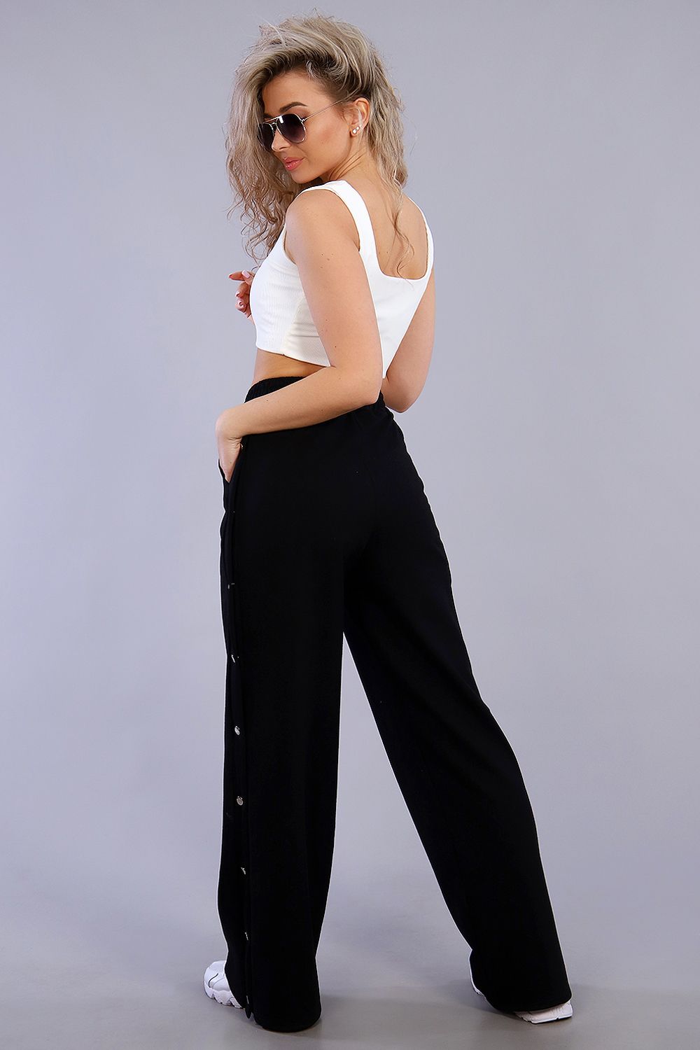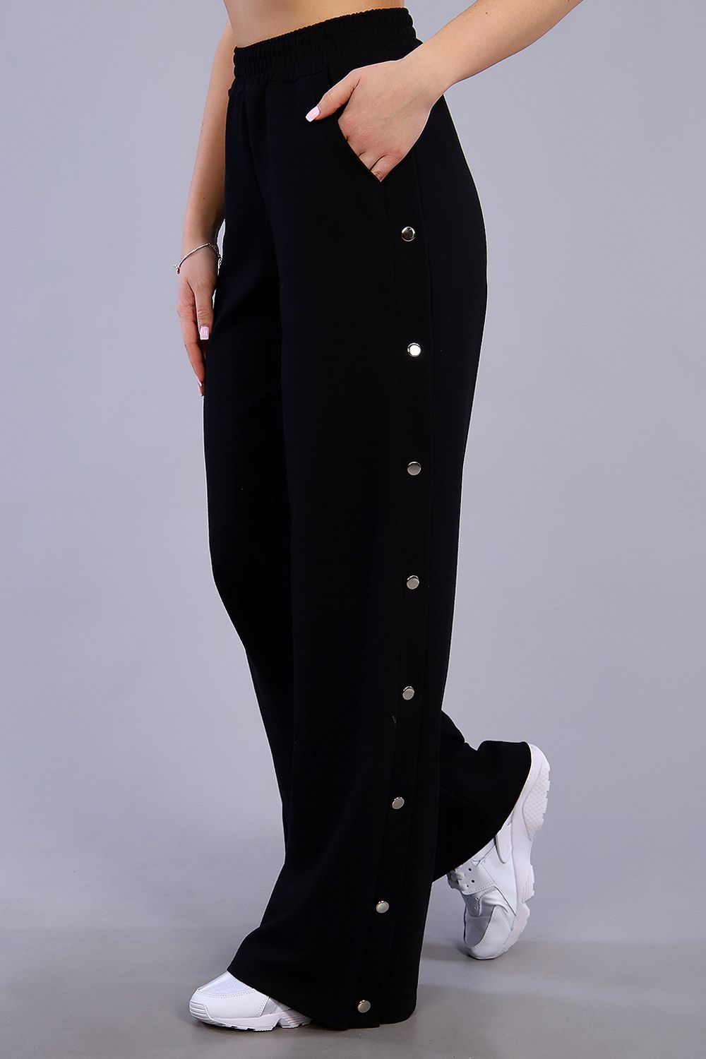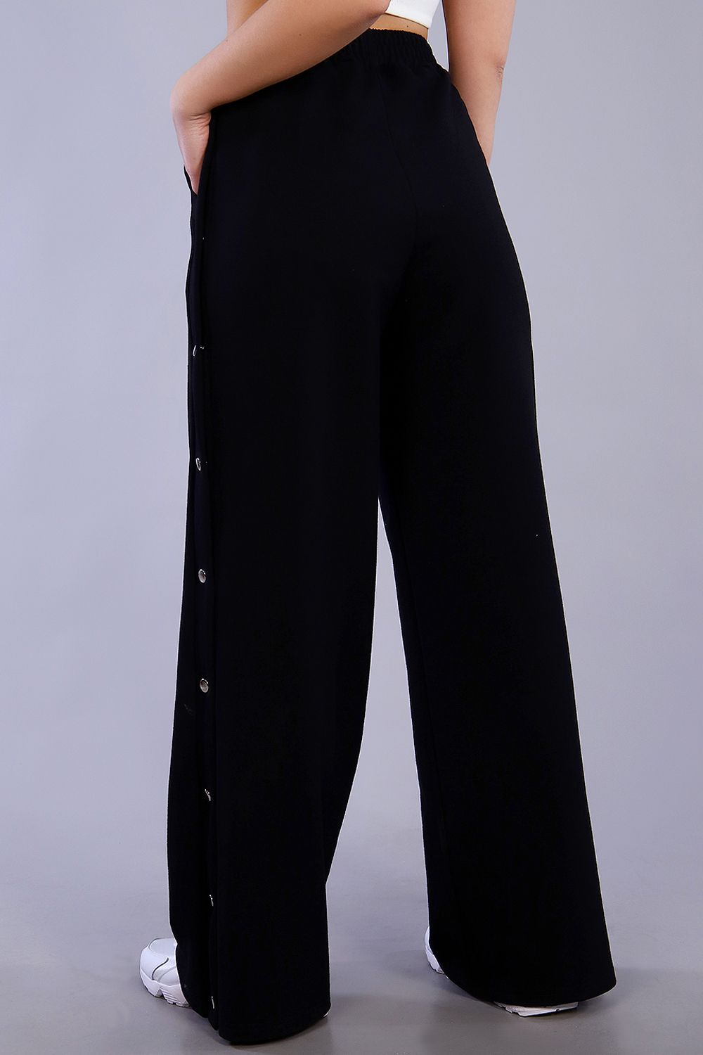 Брюки женские с кнопками по бокам. Данная модель выполнена из трикотажного полотна футер 2-х нитка. По бокам присутствуют карманы. Пояс отшит на поясной машине с резинкой 4,5 см. Отлично подходит для прогулок и для повседневной носки.