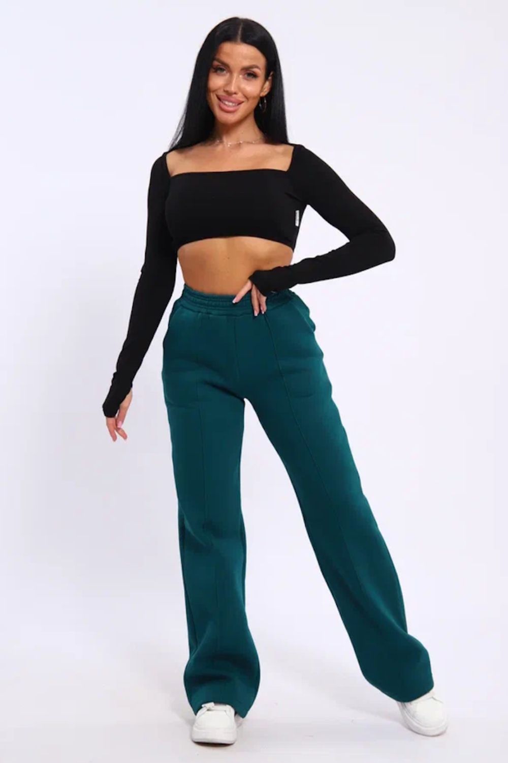Предлагаем Вашему вниманию новую модель: женские брюки из трикотажа средней плотности с теплым начесом . Изделие из такого материала поддерживает оптимальную температуру и не сковывает движения, а за удобную посадку на талии отвечает притачной пояс с регулировочным декоративным шнуром. Модель декорирована отделочными строчками на передних половинках брюк. Для ключей, телефона и прочих мелочей предусмотрены боковые карманы. Такая модель брюк - незаменимая вещь в гардеробе и девушки и женщины. Добавление полиэстера к хлопковому волокну в состав трикотажа, придает ему особую эластичность и стойкость к воздействию ультрафиолета. Эти брюки идеально подходят для повседневного использования, для прогулок и отдыха на свежем воздухе, для путешествий. В наших брюках Вам будет максимально комфортно в холодное время года. Носите с удовольствием! Модель представлена широким размерным рядом с 46р по 60 р.