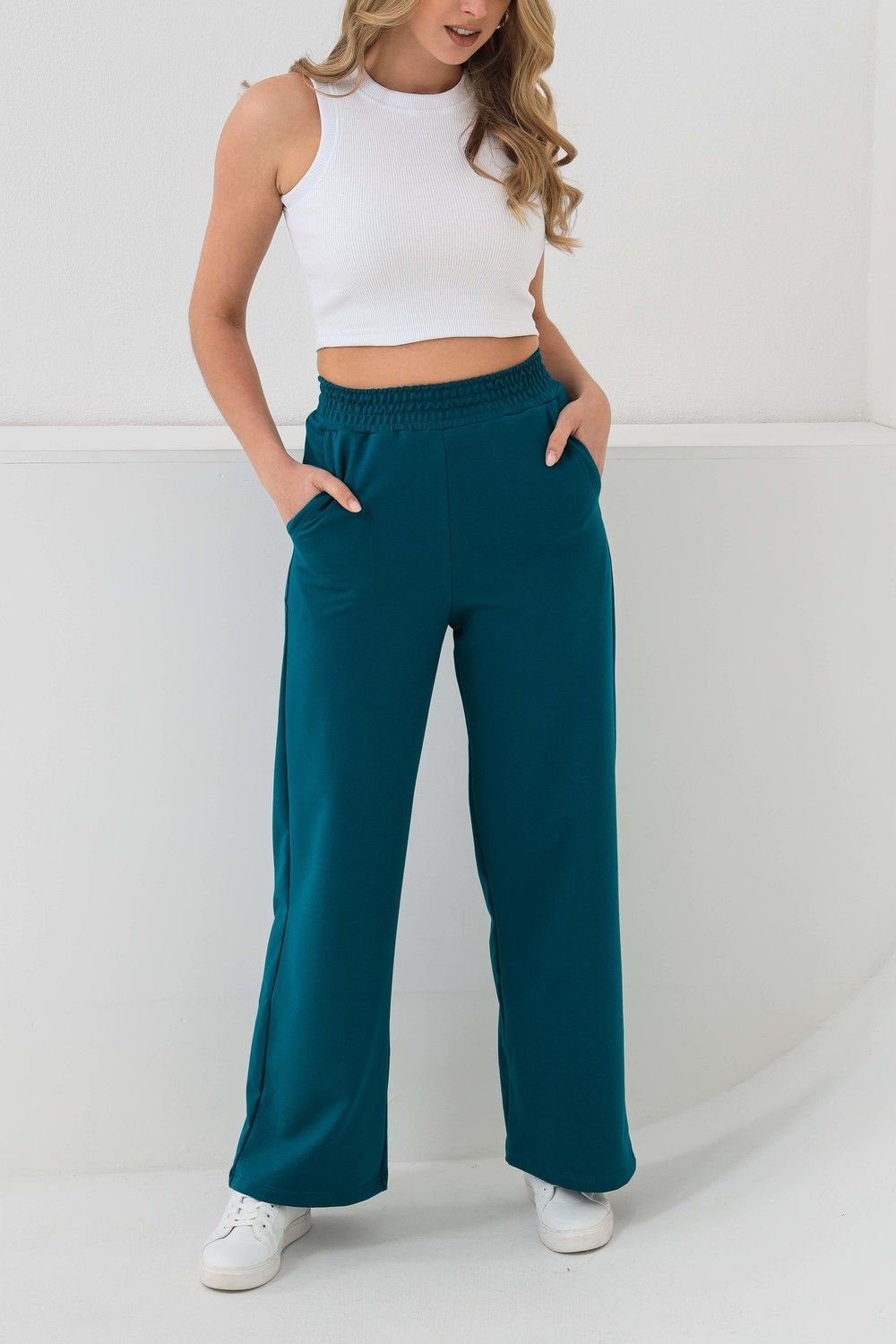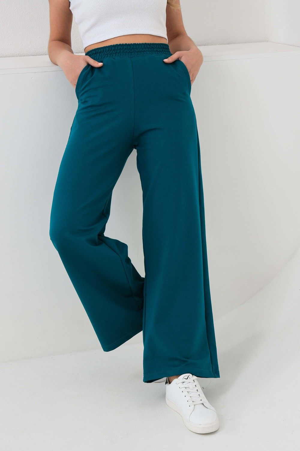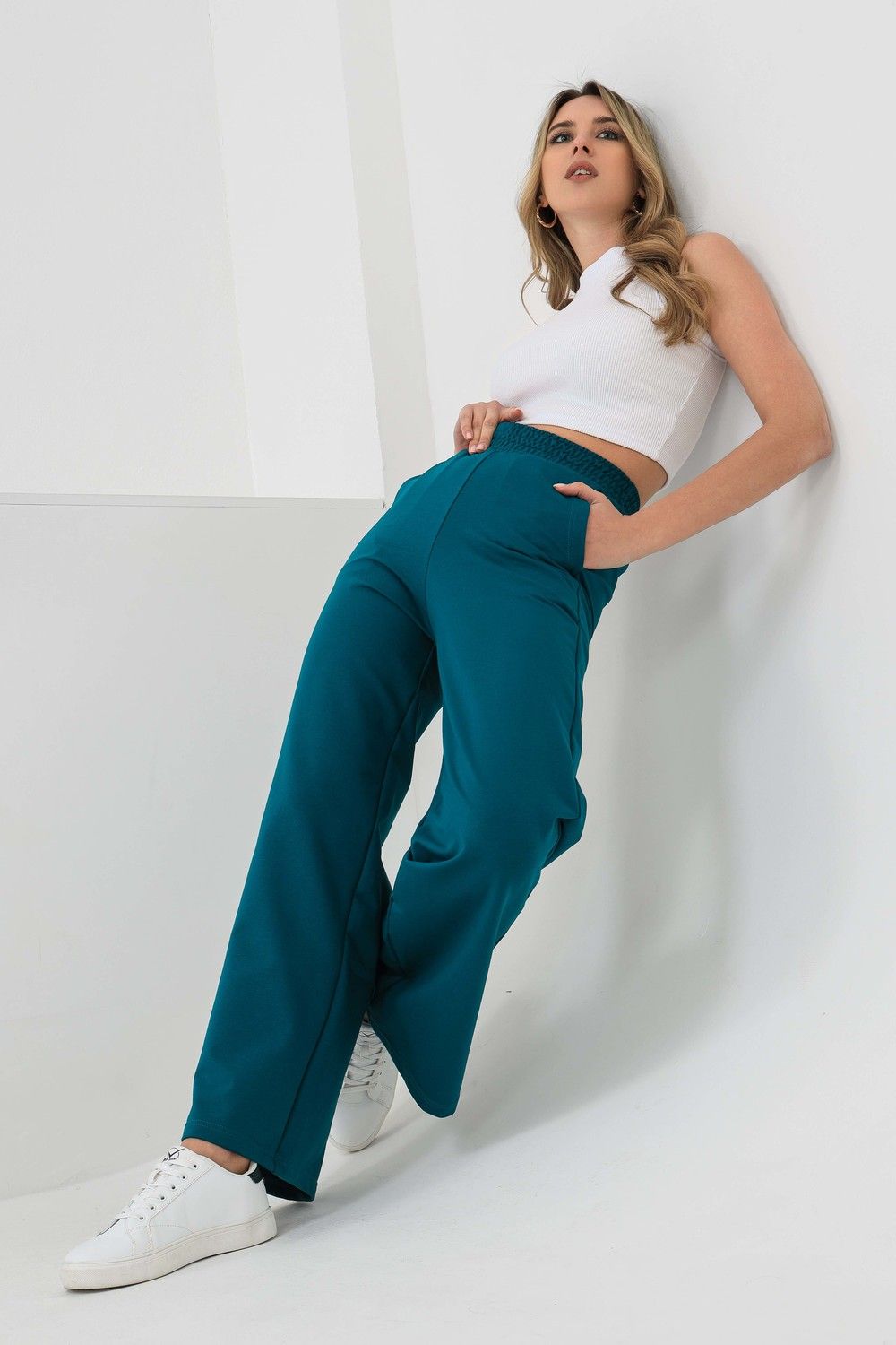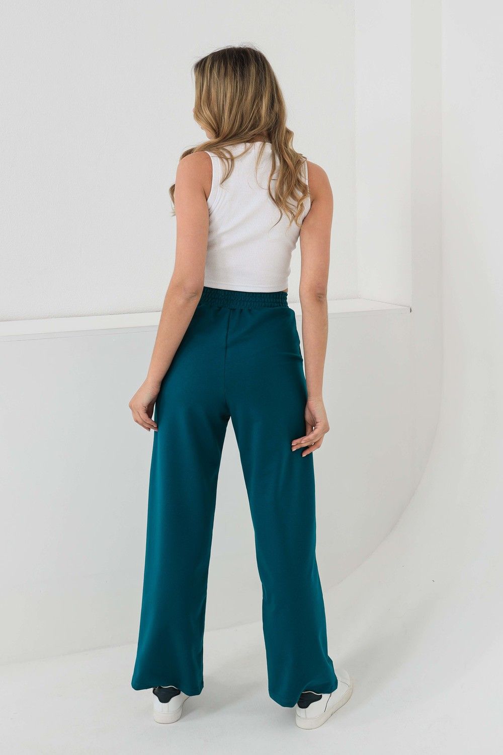 Модные брюки палаццо с высокой посадкой помогут Вам создать стильный образ на каждый день. Мягкая эластичная широкая резинка делает брюки очень удобными. Она не деформируется в процессе эксплуатации, так как прошита на поясной машине. Брюки свободного кроя красиво сидят на любой фигуре, такая модель брюк визуально удлиняет ноги. Брюки выполнены из плотной износостойкой ткани, приятной к телу. Широкий размерный ряд позволяет подобрать подходящую модель девушкам, женщинам больших размеров. Брюки хорошо гармонируют с блузками, кроп топами, футболками. На фото модель рост 170см.
