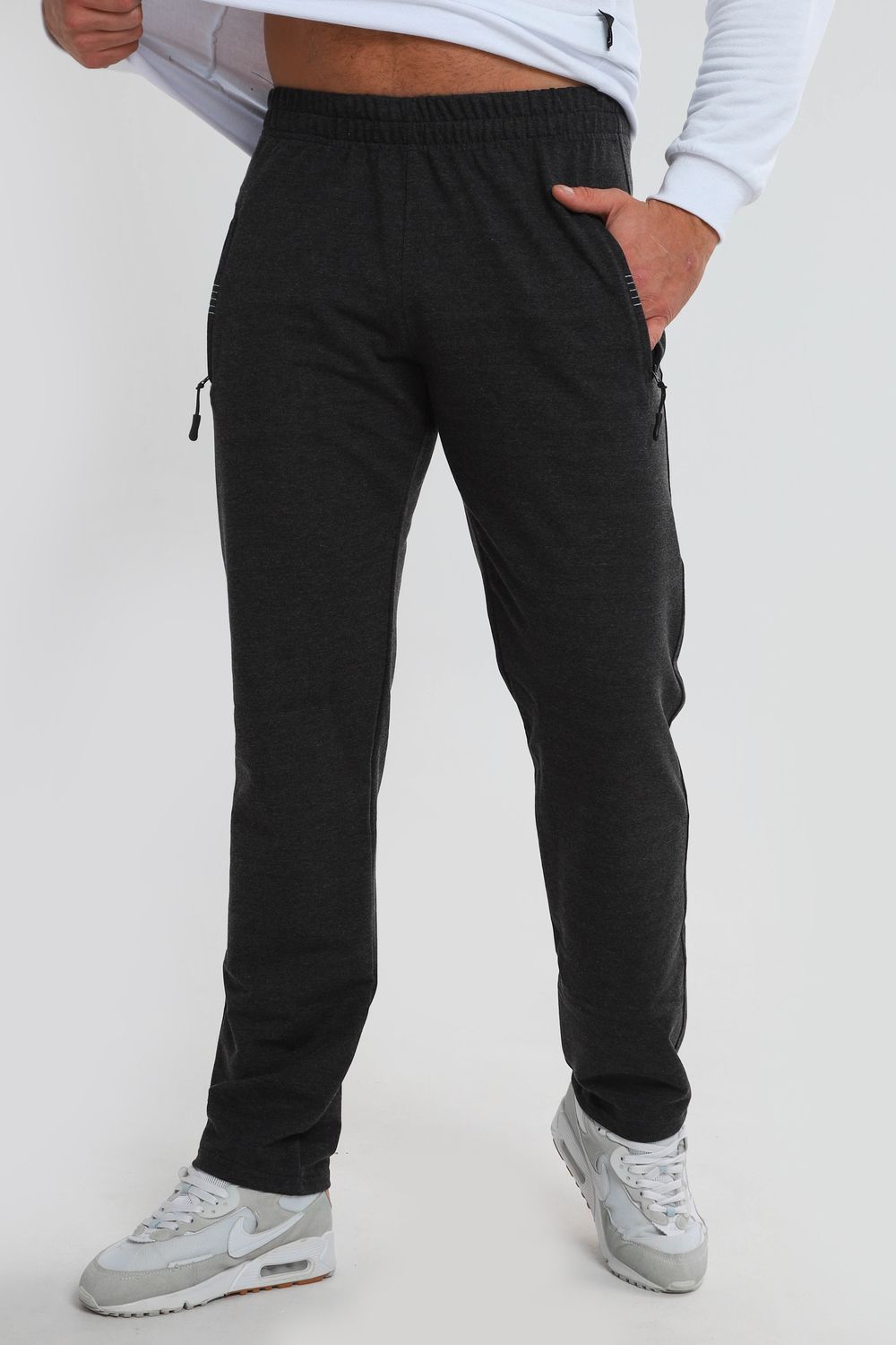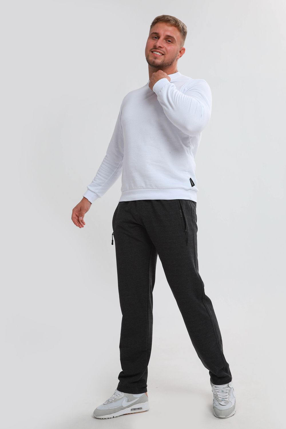 Мужские, спортивные брюки прямого кроя, пояс на резинке со шнурком внутри, средняя посадка, два кармана на молнии, на карманах декоративная вышивка. Материал держит форму, не скатывается. Ткань 2-х нитка компакт пенье. Отлично подойдут для занятий спортом, для повседневной носки.